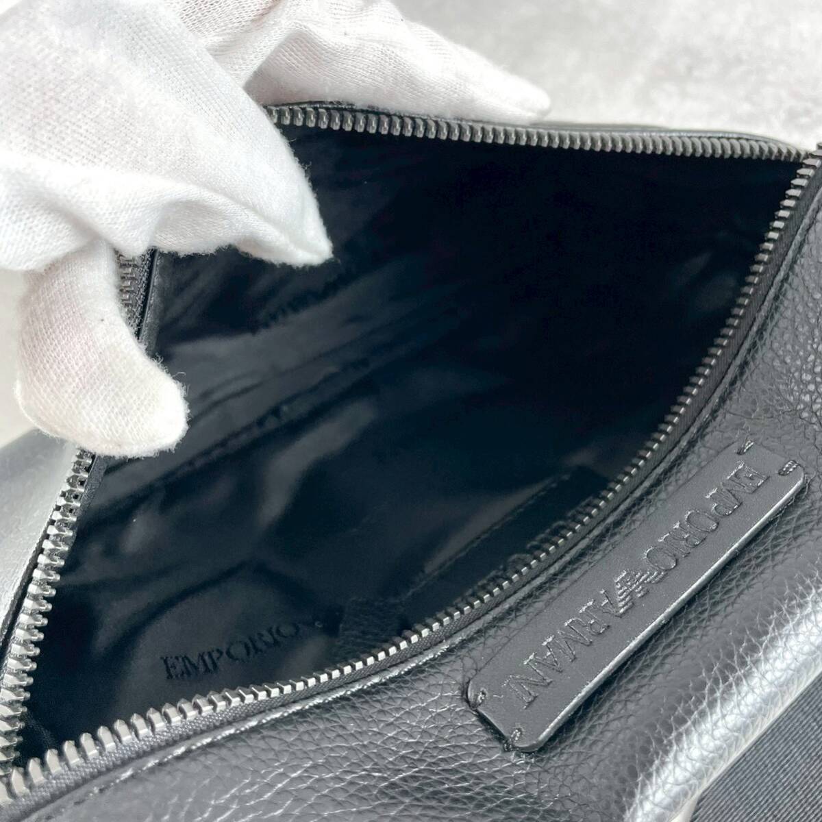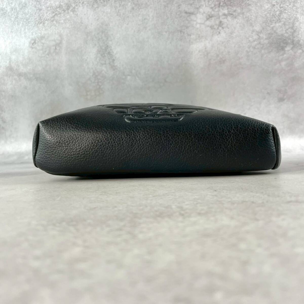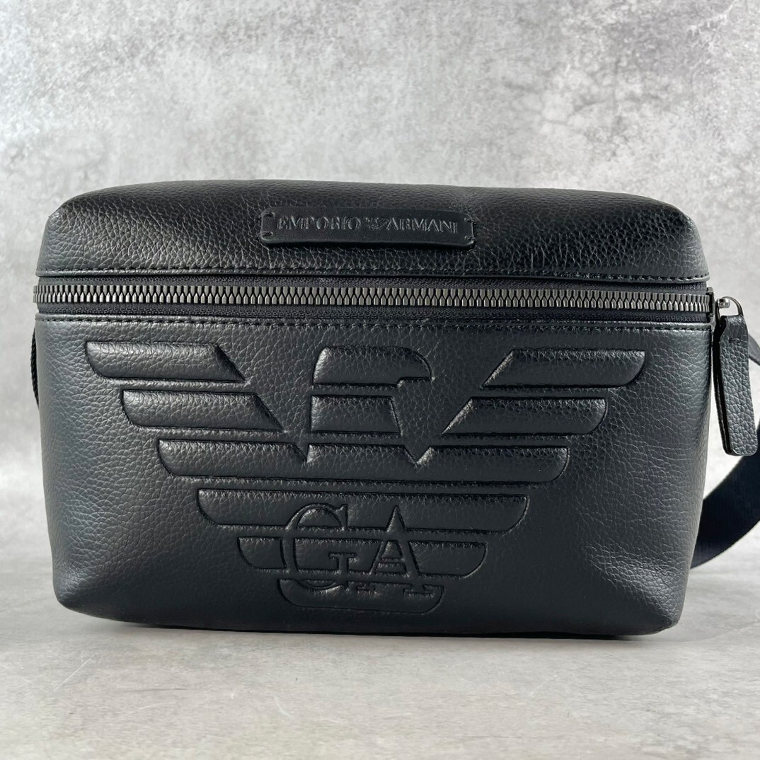 未使用保管品 EMPORIO ARMANI エンポリオアルマーニ ボディバッグ ショルダー エンボスロゴ イーグル レザー 本革 メンズ 黒 ブラック