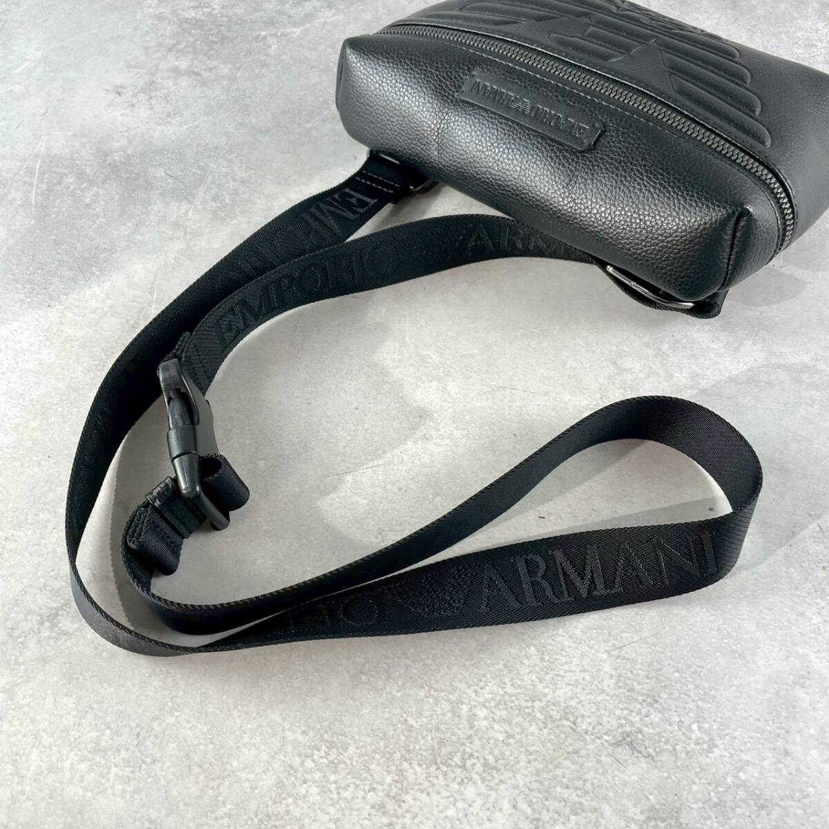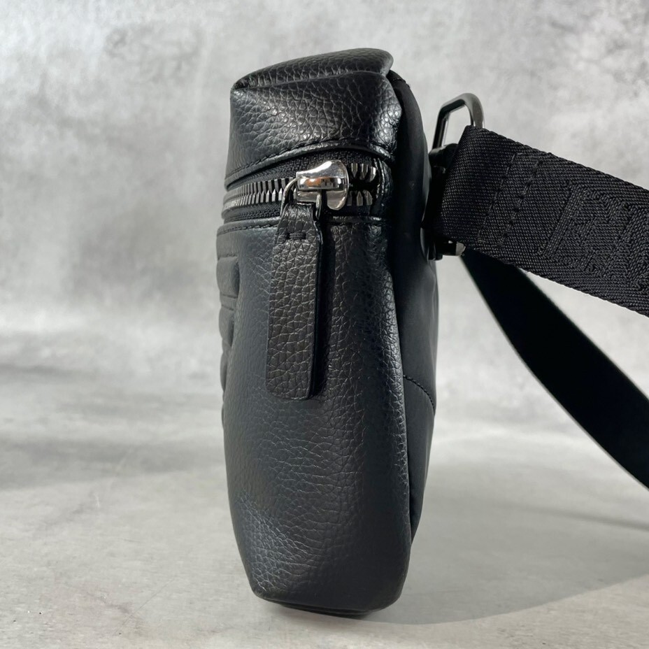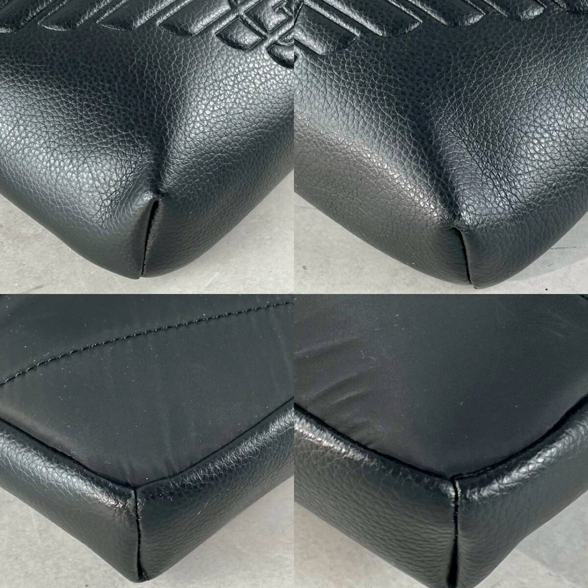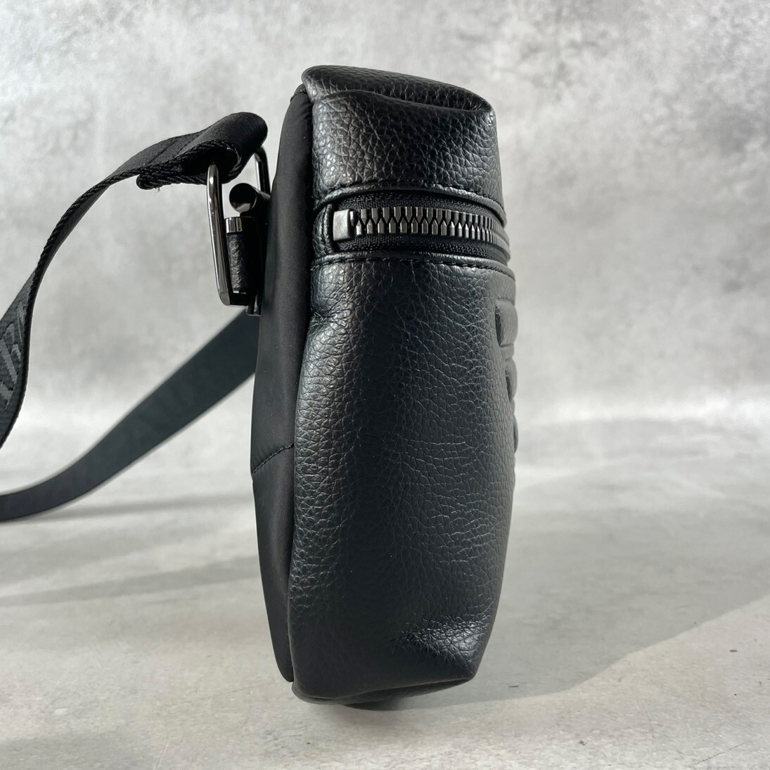 未使用保管品 EMPORIO ARMANI エンポリオアルマーニ ボディバッグ ショルダー エンボスロゴ イーグル レザー 本革 メンズ 黒 ブラック