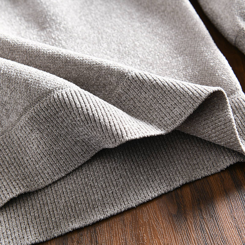 A580-XL濃灰 ニット セーター メンズ シェニール生地 裏起毛 クルーネック 新品 暖かい 厚手 洗える ビジネス カジュアル ニット トップス