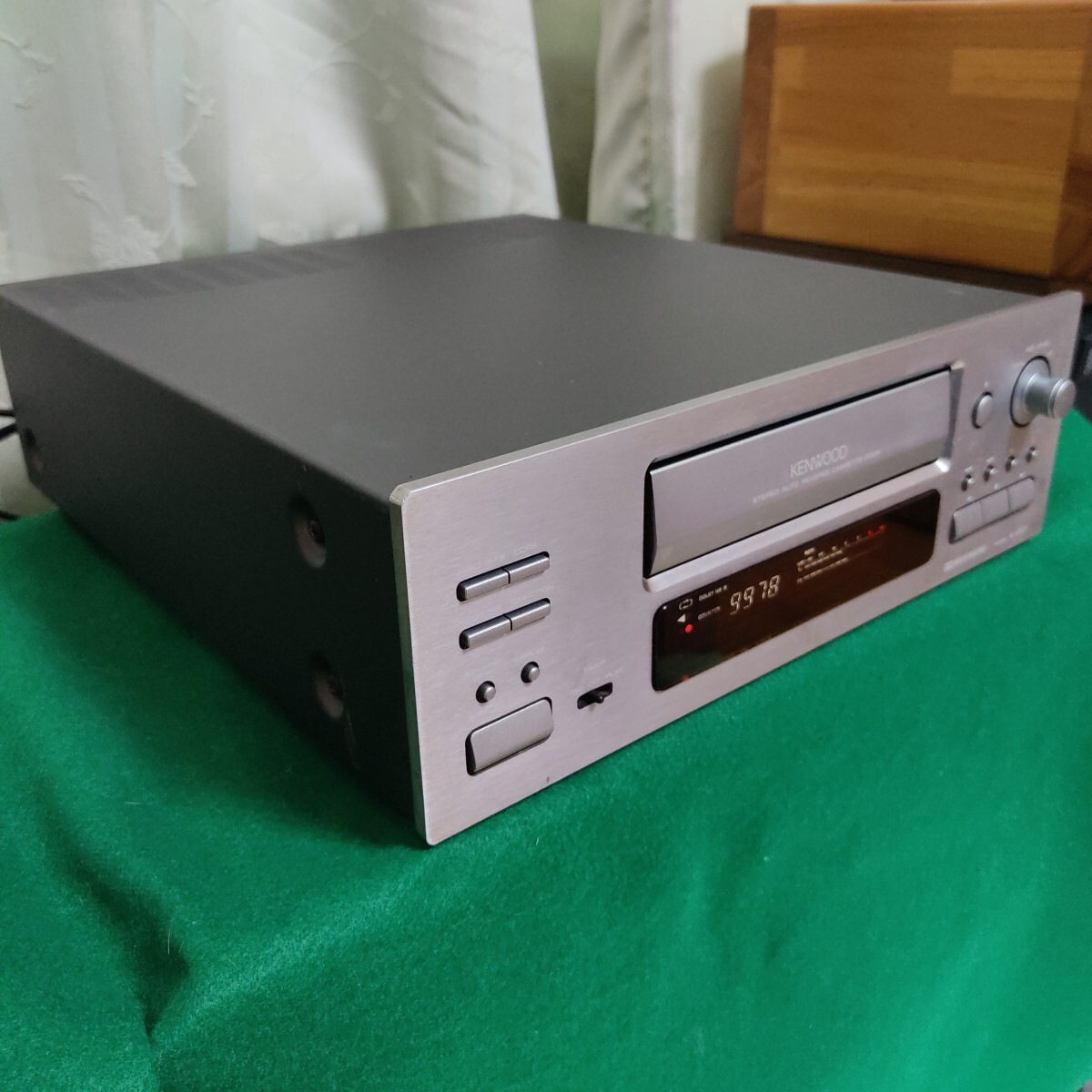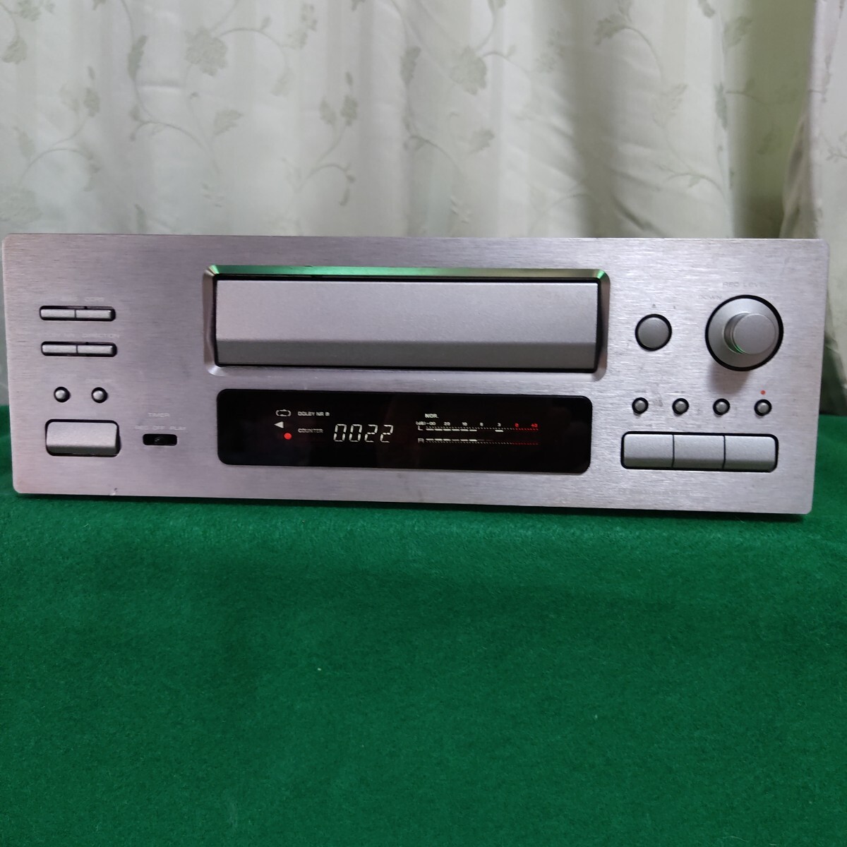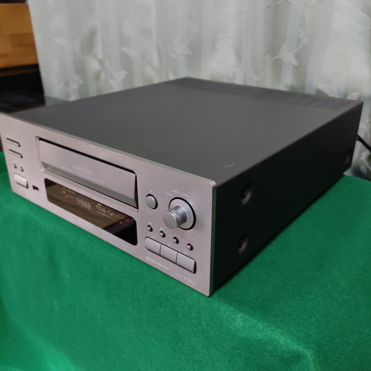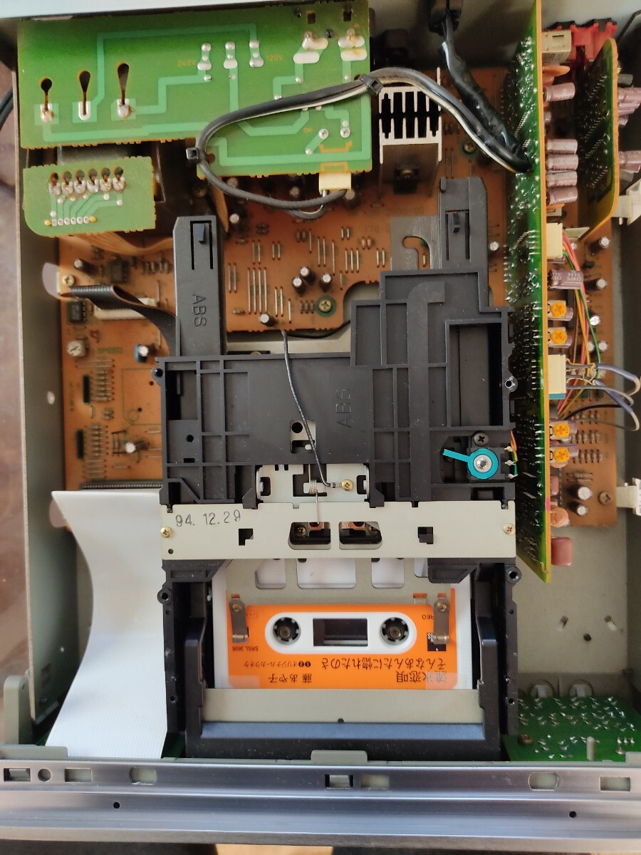 メンテ後、トレー開閉、再生、録音、早送り、巻戻しなど音出しOKです。ディスプレイ部は明るいですがドットの薄い所が少し有ります。又、この機器の弱点である録音レベルの調整が微妙(調整は可能)で経年によるSW反応の鈍さが有るかも分かりません。(全ての動作確認は出来ていません。)