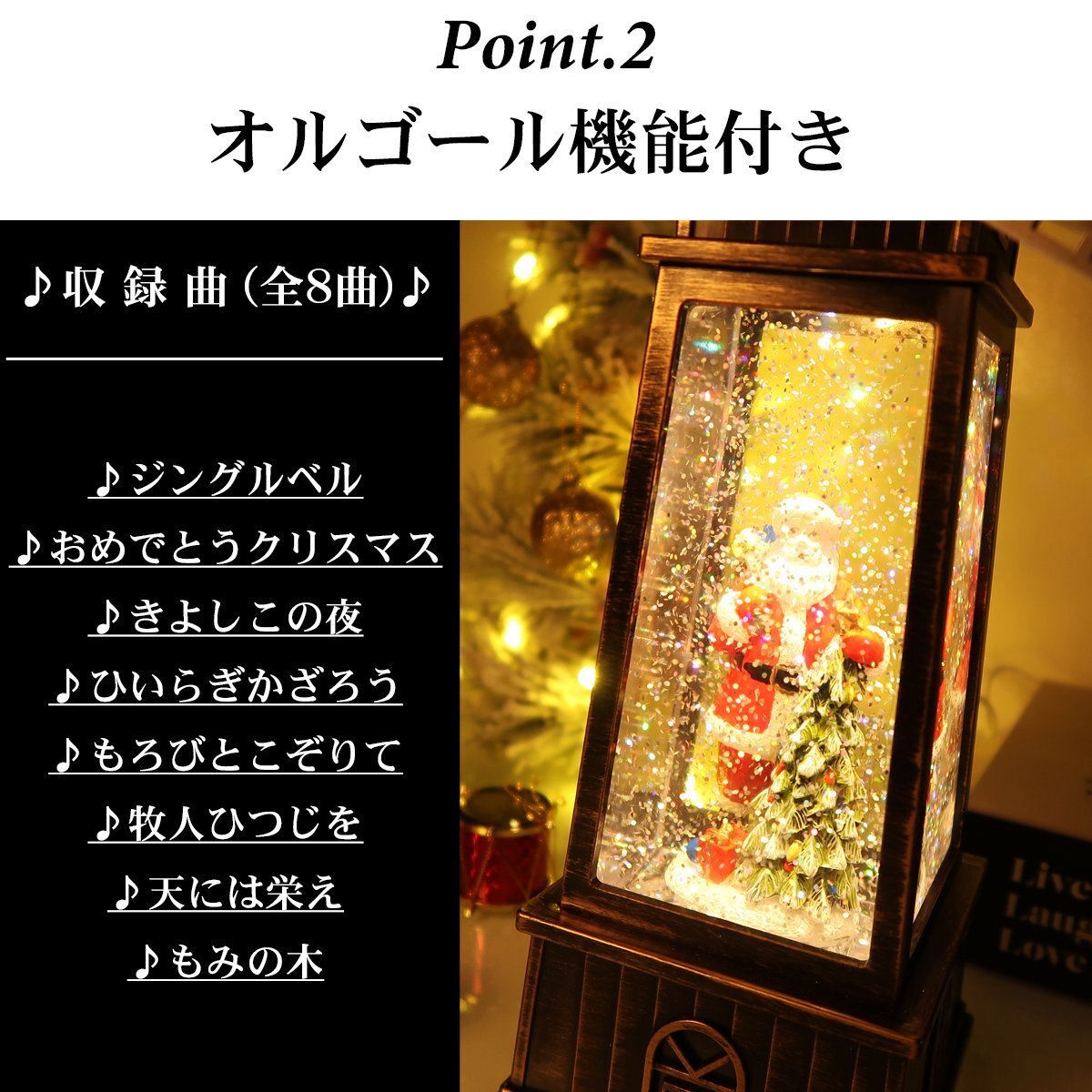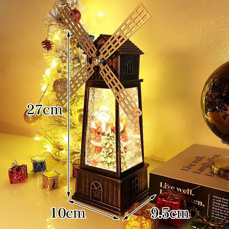 ![]() どこか懐かしさを感じるレトロなスノードーム。 クリスマスを豪華に彩る雰囲気抜群のデザインです! オランダの風車をモチーフにしたメルヘンなデザイン。 LEDライトを点灯させるとドーム内のラメが雪の様に舞い降ります。 風車部分もくるくると回ります♪ クリスマスソング8曲を搭載したオルゴール機能付きでさらに雰囲気抜群♪ LEDライトに照らされ、キラキラと輝きながら音楽を奏でる様が クリスマスムードを盛り上げます♪ 心がなごむ絵本のワンシーンのようなスノードームの世界。 置くだけでもクリスマス気分が高まる事間違いなし! 給電方法は2つ、付属のUSBコードで使用する他、 単三電池3本でコードレスとしての使用も可能! 精巧に作られている為、ライトを点灯させずに 単体でオブジェとして使用しても存在感抜群です! ギフトなどにもおすすめです! ●動作パターン● ・未点灯 ・LED点灯(音楽なし) ・LED点灯(音楽あり) ※乾電池、USB出力用のアダプターは付属しておりません。 点灯時の様子は動画でご覧くださいませ。 動画はこちら ↓↓↓↓↓↓↓↓↓↓↓↓↓ こちらをクリック! 【商品詳細】 サイズ(約): 高さ27cm×幅10cm×奥行き9.5cm コード長さ(約):98cm 【給電方法】 単三電池×3/USBコード |