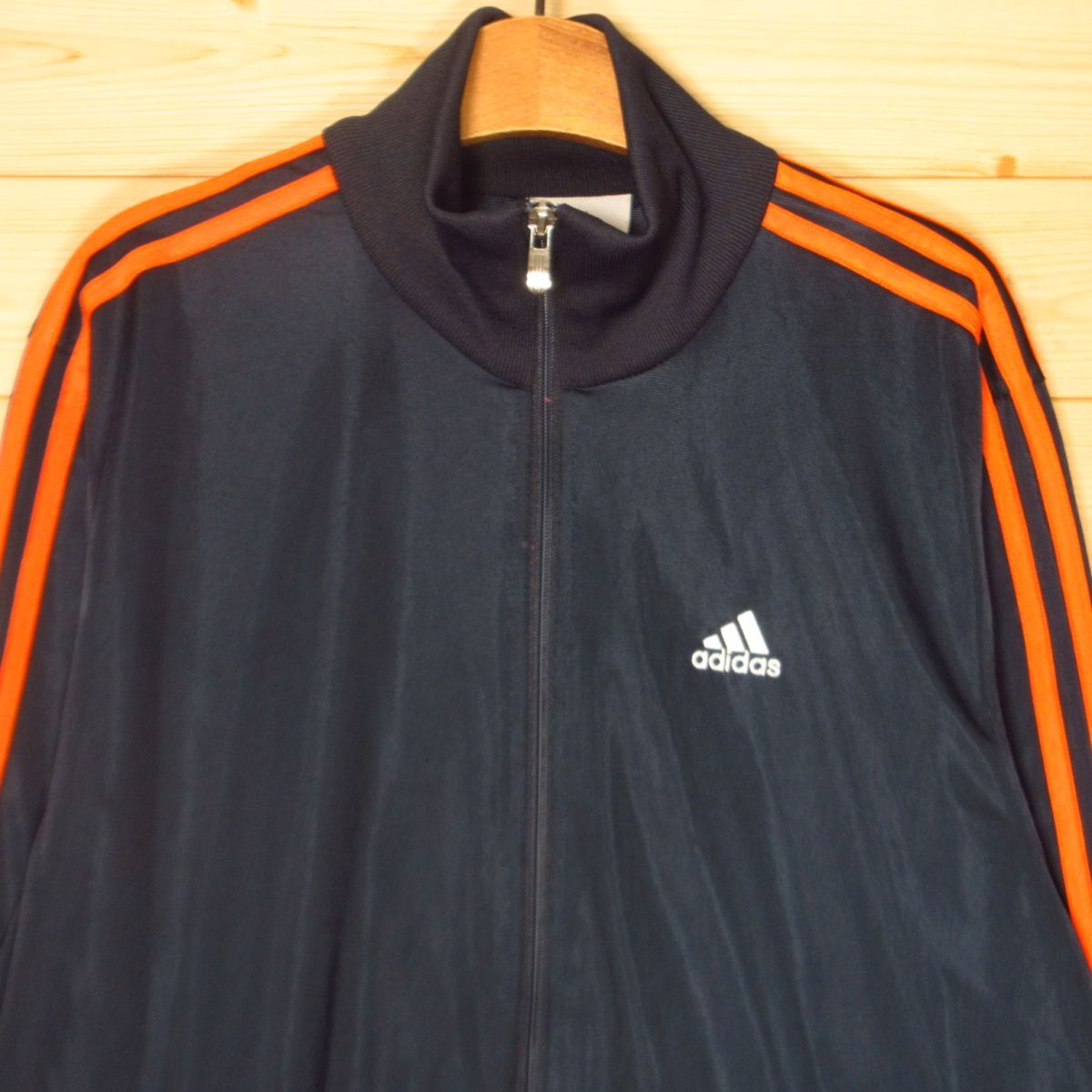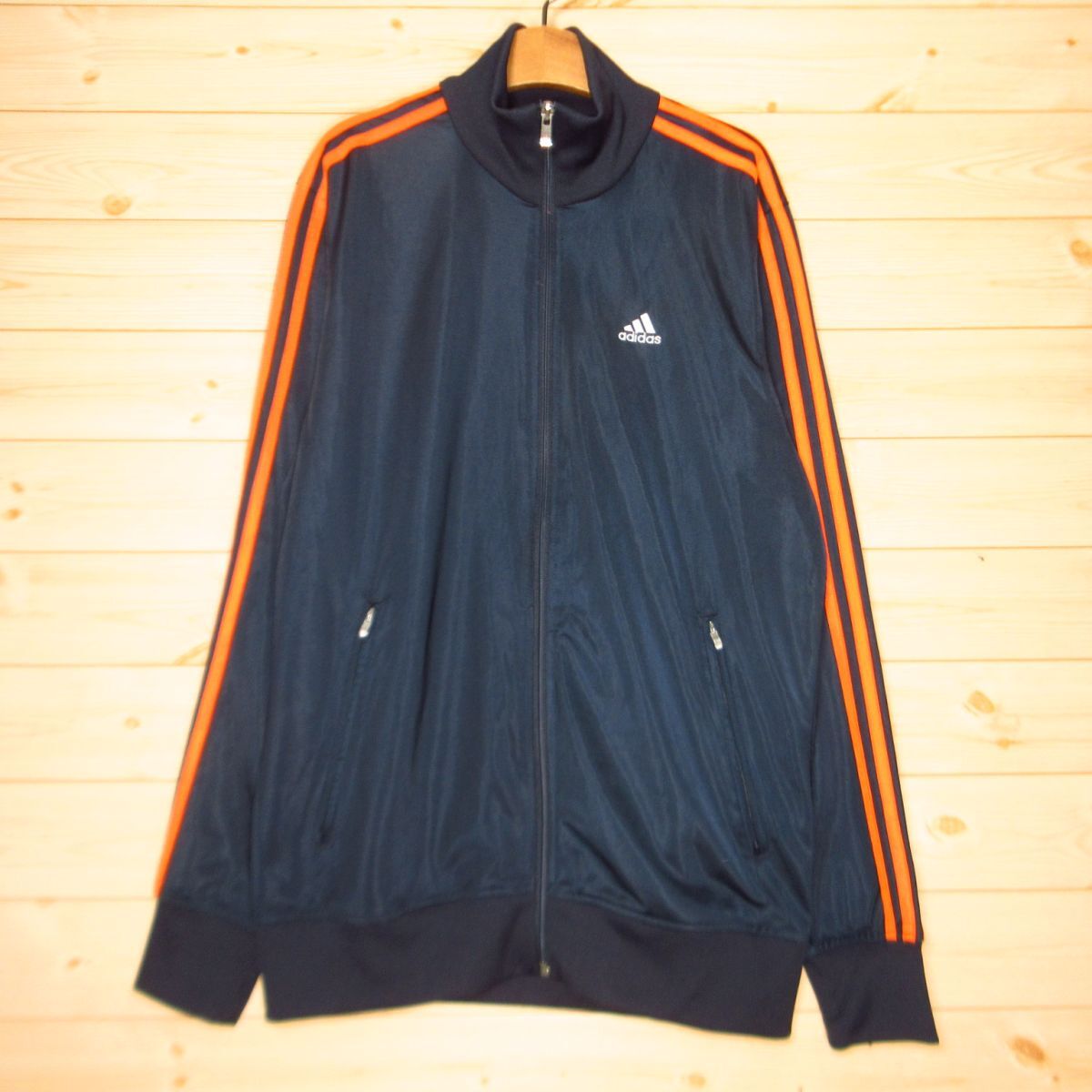 ◎使用少々!adidas アディダス 光沢 ジャージ トラックジャケット 三つ葉 トレフォイル 刺繍 メンズ 紺 ネイビー Mサイズ◆AA5370