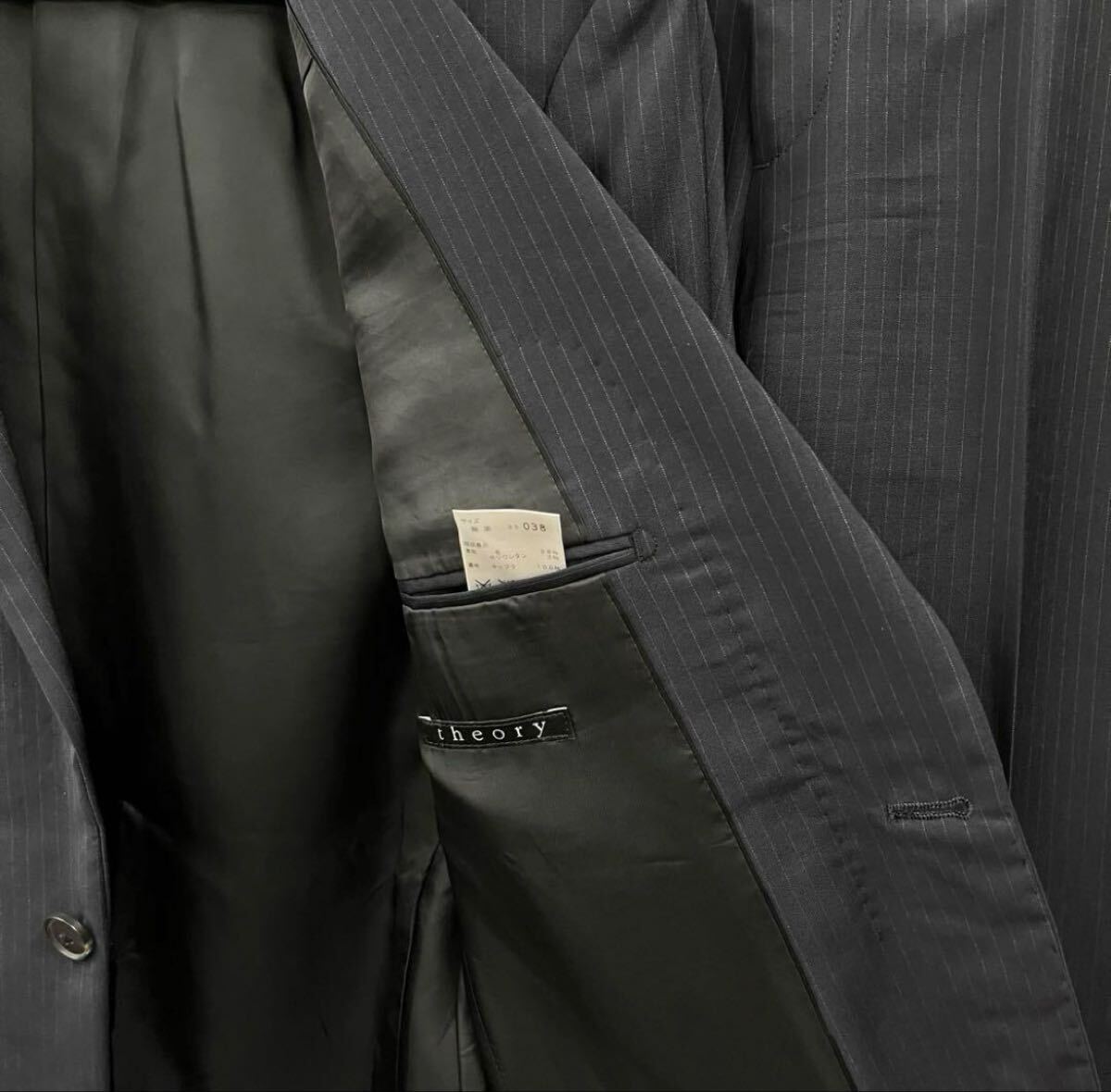 Theory セオリースーツストライプネイビー 38Lセットアップ上下セット 薄手 春夏ボックスタグ