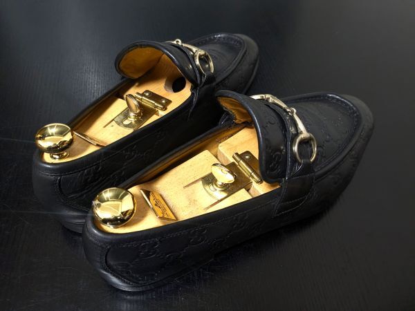 グッチ 41.5EJ GUCCI GGシマ ホースビット ソフトドレスローファー 黒 1068
