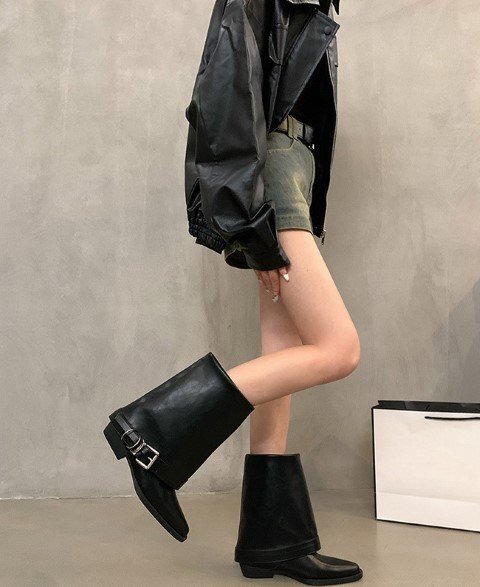 ・美脚効果抜群のポインテッドトゥ& トレンドのフットカバーレイヤードデザインブーツです。