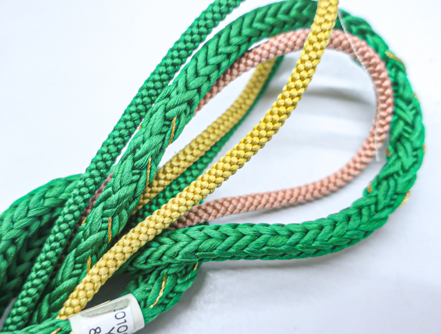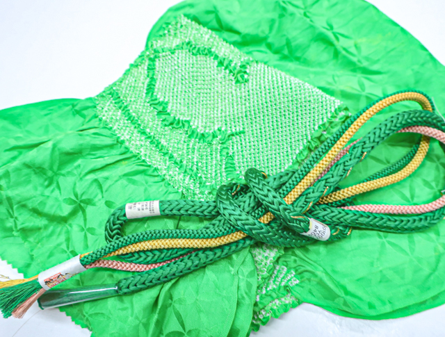リサイクル商品のため、帯揚げに若干のシボ伸びや所々に変色、帯締めに薄汚れがございますが、ご使用頂けると存じます。 |
