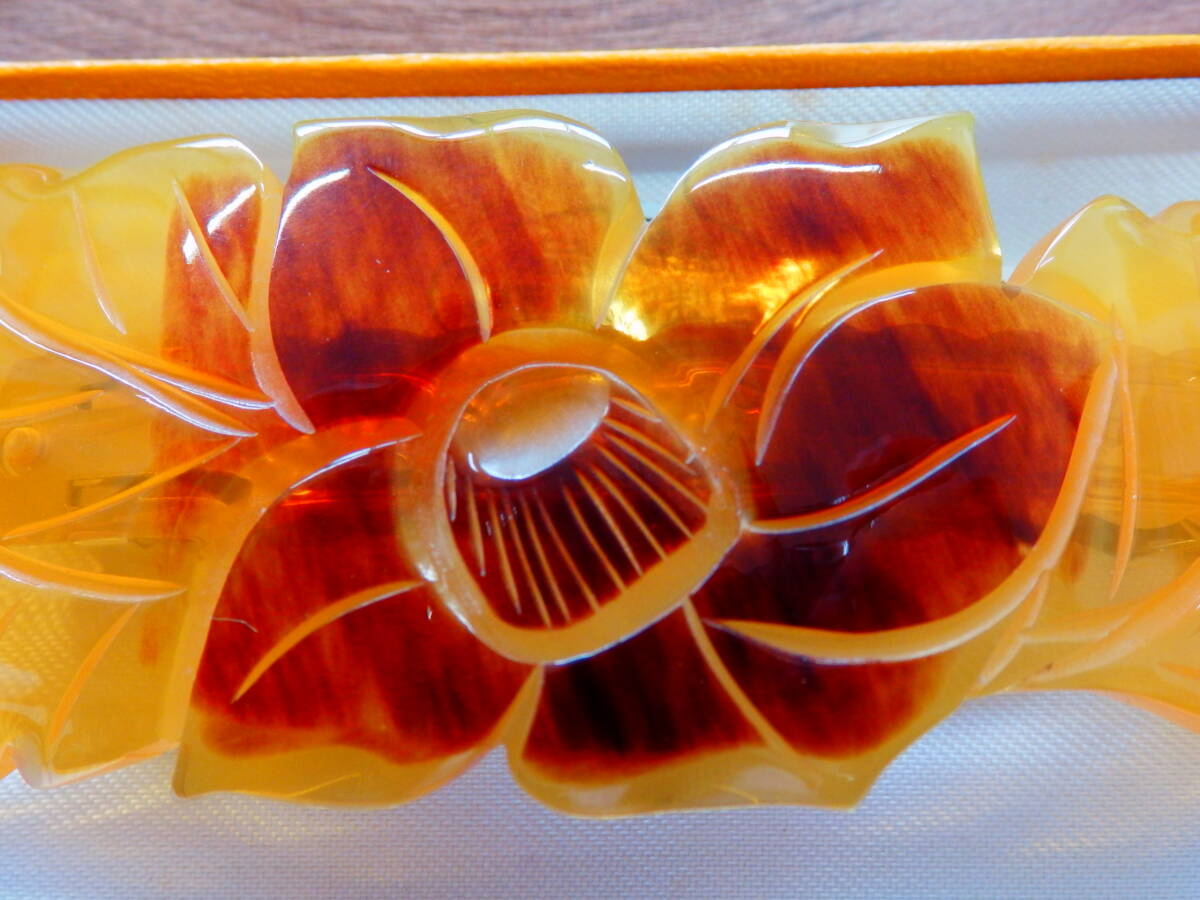 | 【未使用】張鼈甲製品 アクセサリー ヘアアクセ バレッタ べっ甲 花柄 髪留め | ||||