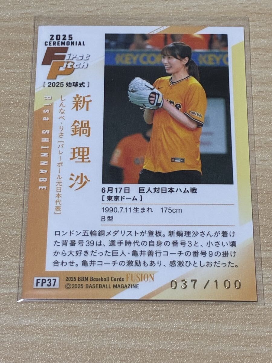 新鍋理沙 BBM 2025 FUSION 始球式カード 037/100 100シリアル