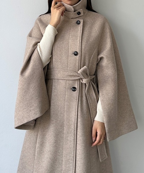 参考商品名:【選べる2素材 ウールライク/ヘリンボーンシャギー】2wayスリットスリーブハイネックフレアコート