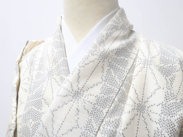 リサイクル商品のため、胴にスナップボタン汚れがございます。 表所々しみと右前袖に汚れと薄やけがございますが着用可能なお品です。 地色は アイボリーです。 1枚目の画像が近いお色かと思われます。 素材は正絹です。 |