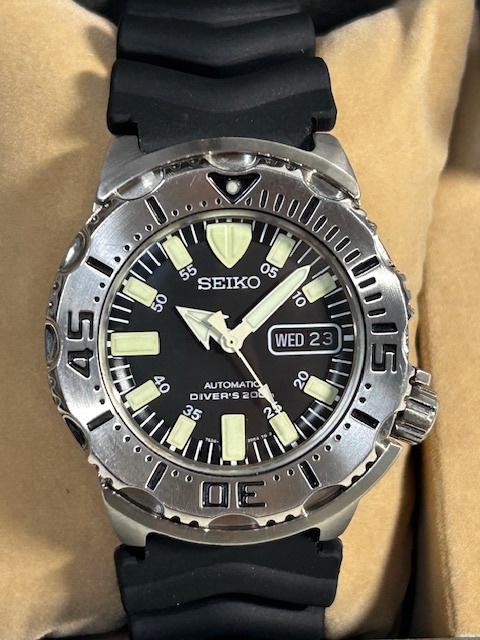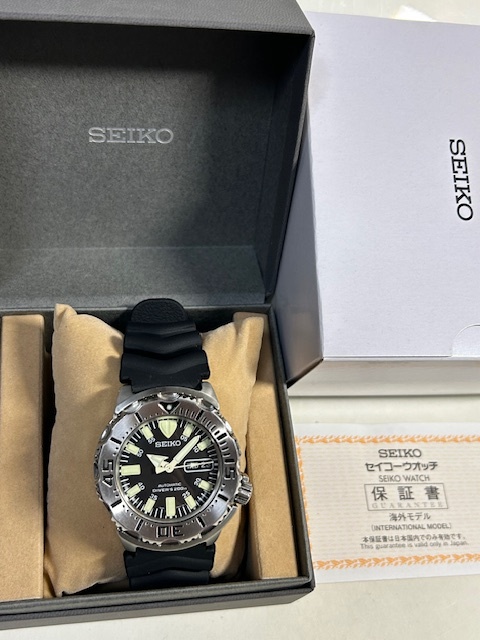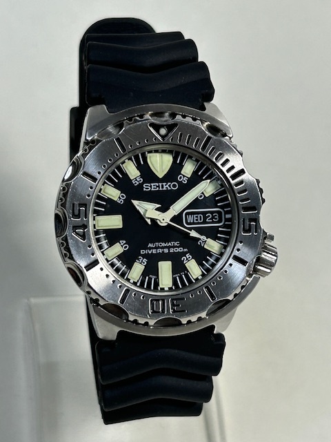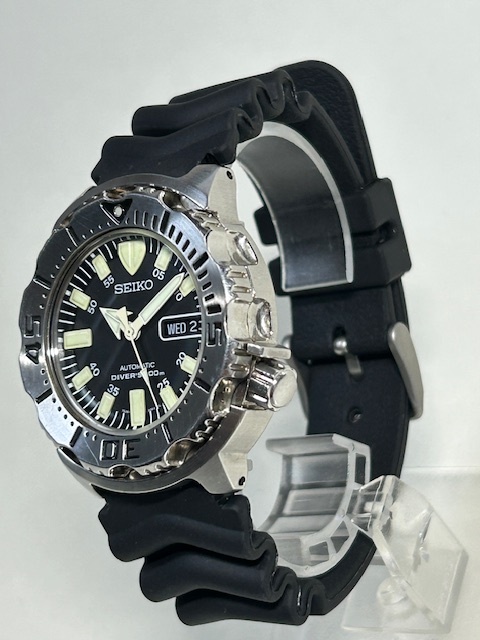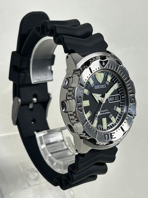 品名: セイコー ダイバー ブラック モンスター自動巻 純正ウレタンラバーベルト装着