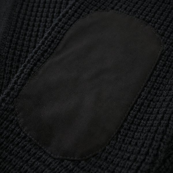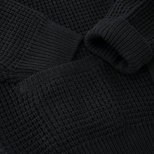 | 新品 未使用 紙タグあり Lサイズ(画像は別サイズで撮影) チェスト96~104 身長175~185 ※商品に記載されたサイズ・寸法です※ 肩幅47cm 身幅56cm 袖丈61cm 着丈66cm ※伸縮性が高いニット素材のため多少誤差が生じることがあります※ アクリル70% 毛30% ブラック |