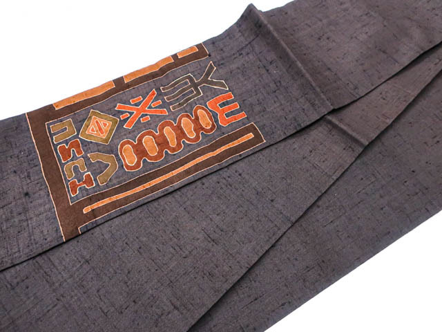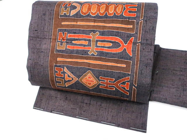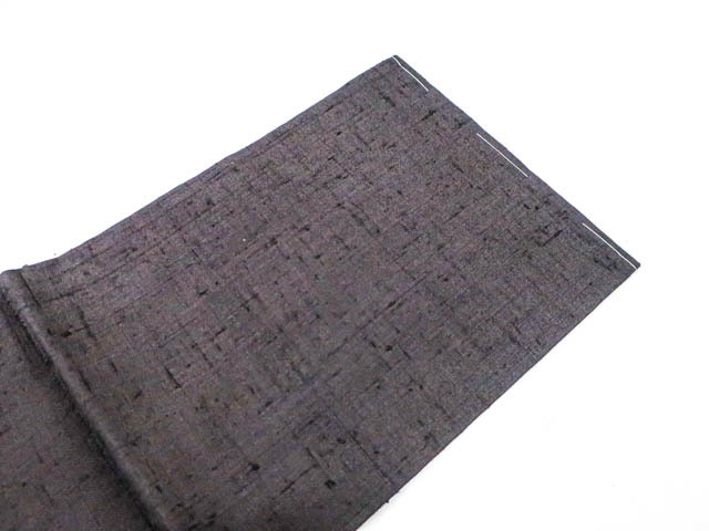 リサイクル商品の為、お太鼓に薄シミ、前柄・無地場・折れ山に薄ヤケがございますがご着用いただけると存じます。 地色は、茶紫です。 1枚目の画像が近いお色かと思われます。 素材は正絹です。 |