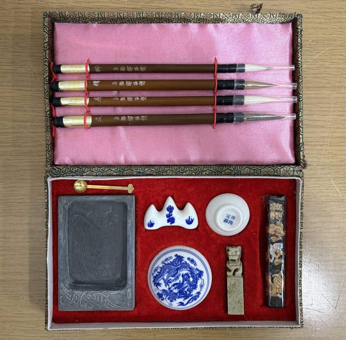 ・上海博物館 文房精粹:筆、硯、印鑑等 書道セット(筆は4本)