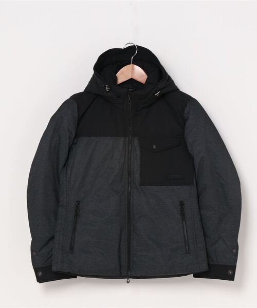 素材:表地:ナイロン65%、ポリエステル(裏、ポリウレタンラミネート加工) 35%、裏地:ポリエステル100%、別布:ナイロン100%、羽毛:ダウン50%、フェザー50%、一部中わた(フード、衿、脇、袖口):ポリエステル100%