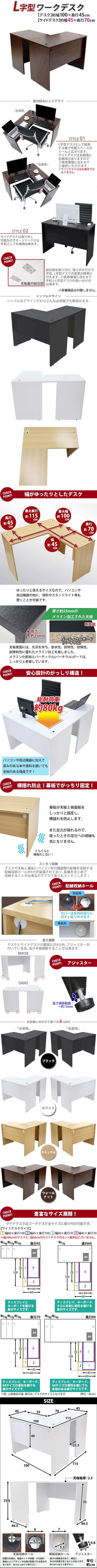 | 商品紹介 | ■作業スペースを広く確保出来る、L字型ワークデスクです。 ■サイドデスクの幅が約45cmのタイプです。 ■会議室や事務所等、オフィス家具として様々なシーンでお使いいただけます。 ■天板には、メラミン加工を施しています。 ■幕板が天板と側面板をがっちりと固定!横揺れを防止します。 ■ネジ穴隠しのシール付き。(サイドデスクのみ付属) ■デスクの天板と幕板に配線収納ホールが2カ所ずつ備わっています。 ■アジャスターで高さの調節が可能です。(高さ調節範囲〜約15mm) ※こちらの商品は、組立て式です。組立てにはプラスドライバーが必要です。お客様でご用意ください。 ※組立図が付属します。 ※サイドデスクの取り付けはデスクの右側専用となります。 ■材質:パーティクル(パーチクル)ボード(メラミン加工)(本体、サイドデスク)、プラスチック(アジャスター、配線収納ホール) ■重量:約32kg(デスク:約19kg、サイドデスク:約13kg) ■総耐荷重:約80kg ●新品商品ではありますが、輸入商品の為、多少の擦り傷などがある場合がございますので、ご納得の上ご購入下さいませ。 ●ご購入後、お客様ご都合によるご返品、ご返金等は一切お受け致しておりません。 ●本商品を使用した際に発生したトラブル、事故につきまして、当社は一切の責任を負いません。ご使用に関しましては、全て自己責任にてお願い致します。 ※カラーはウォールナットとなります。 |