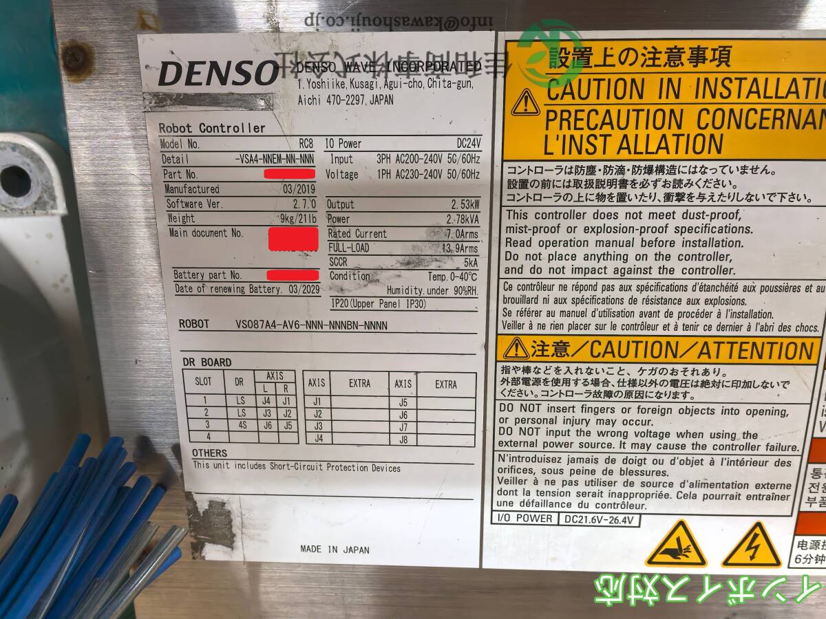 メーカー:DENSO 型番:VS087A4-AV6-NNN RC8 付属品:なし 状態:動作未確認のため、ジャンク扱い品とさせていただきます。ノークレーム、ノーリターンでお願いいたします。 画像が全てとなります。 お問い合わせメール: info@kawashouji.co.jp 設定、メンテナンスに関しては一切サポートを行っておりません。 ※商品は中古品なので、少々の汚れや擦り傷などがある場合も御座いますので、ご了承の上でご購入ください。 キズ、汚れに関してはノークレーム、ノーリターンでお願い致します。 | |