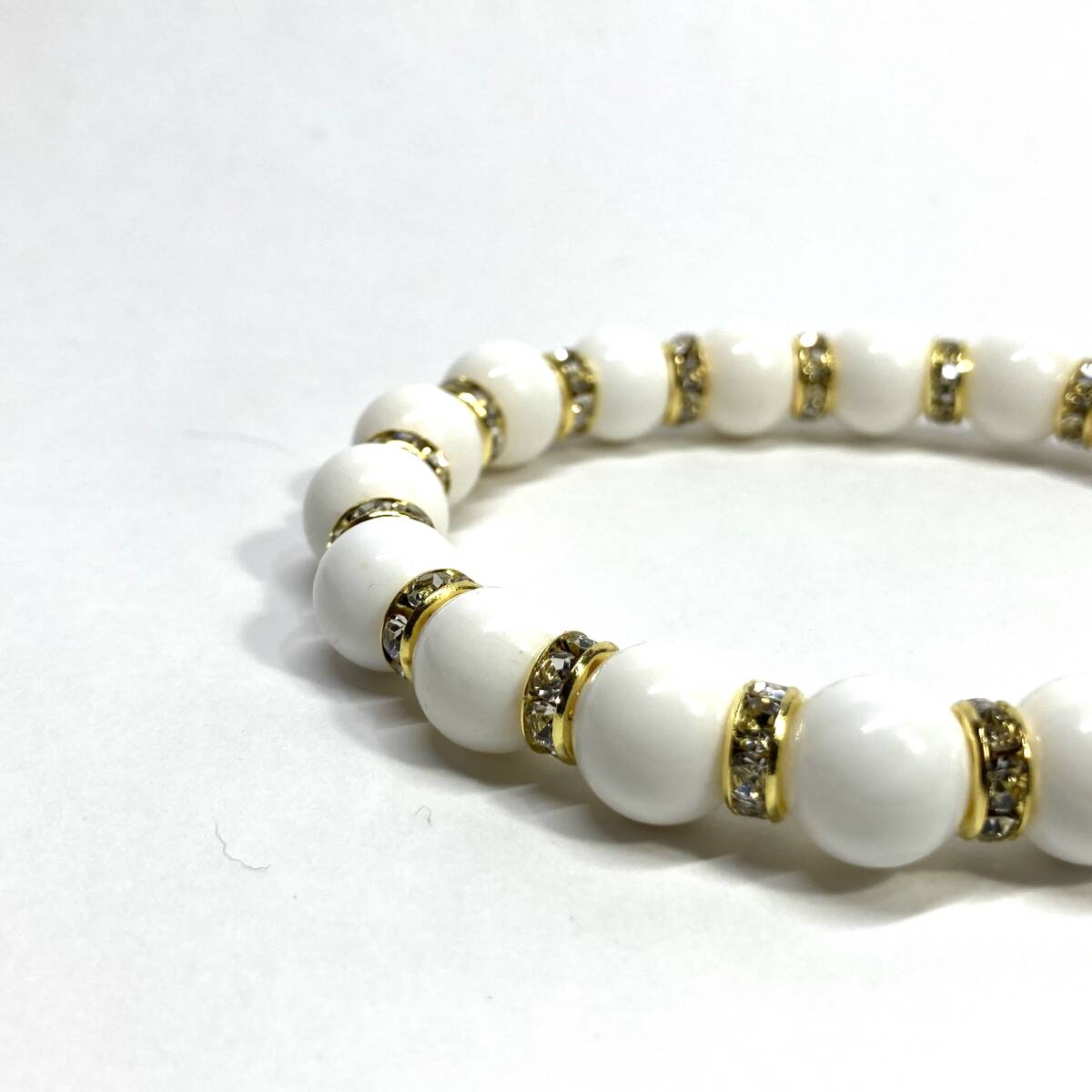 ホワイトオニキス パワーストーン ブレスレット 天然石ブレス 10mm メンズ・レディース (ゴールド) 開運 浄化 数珠ブレス ☆
