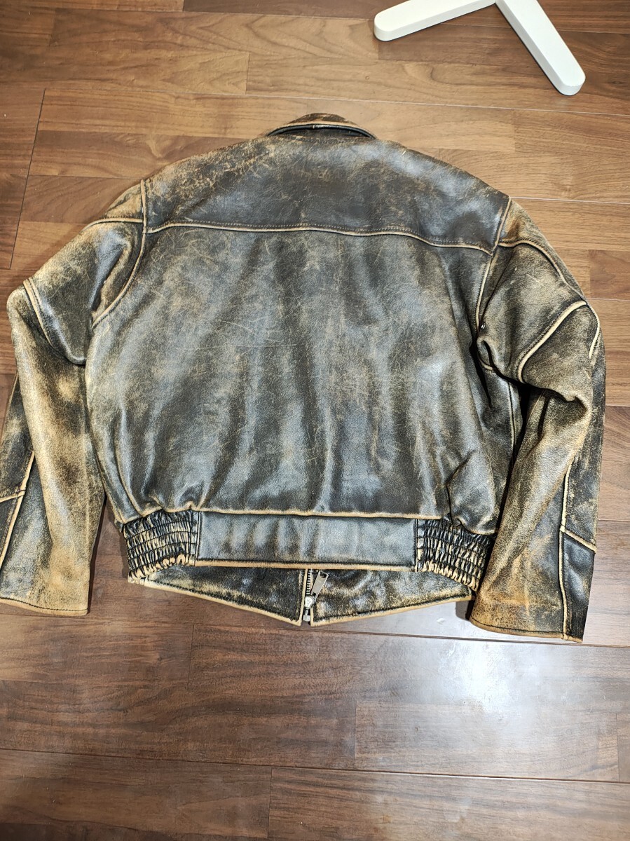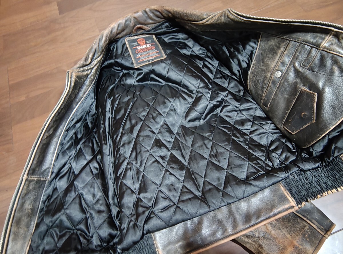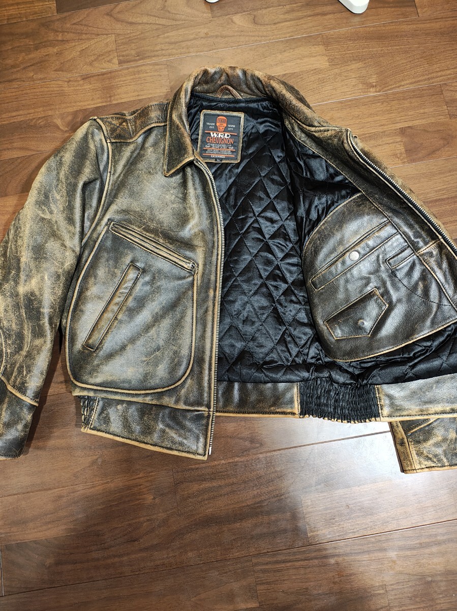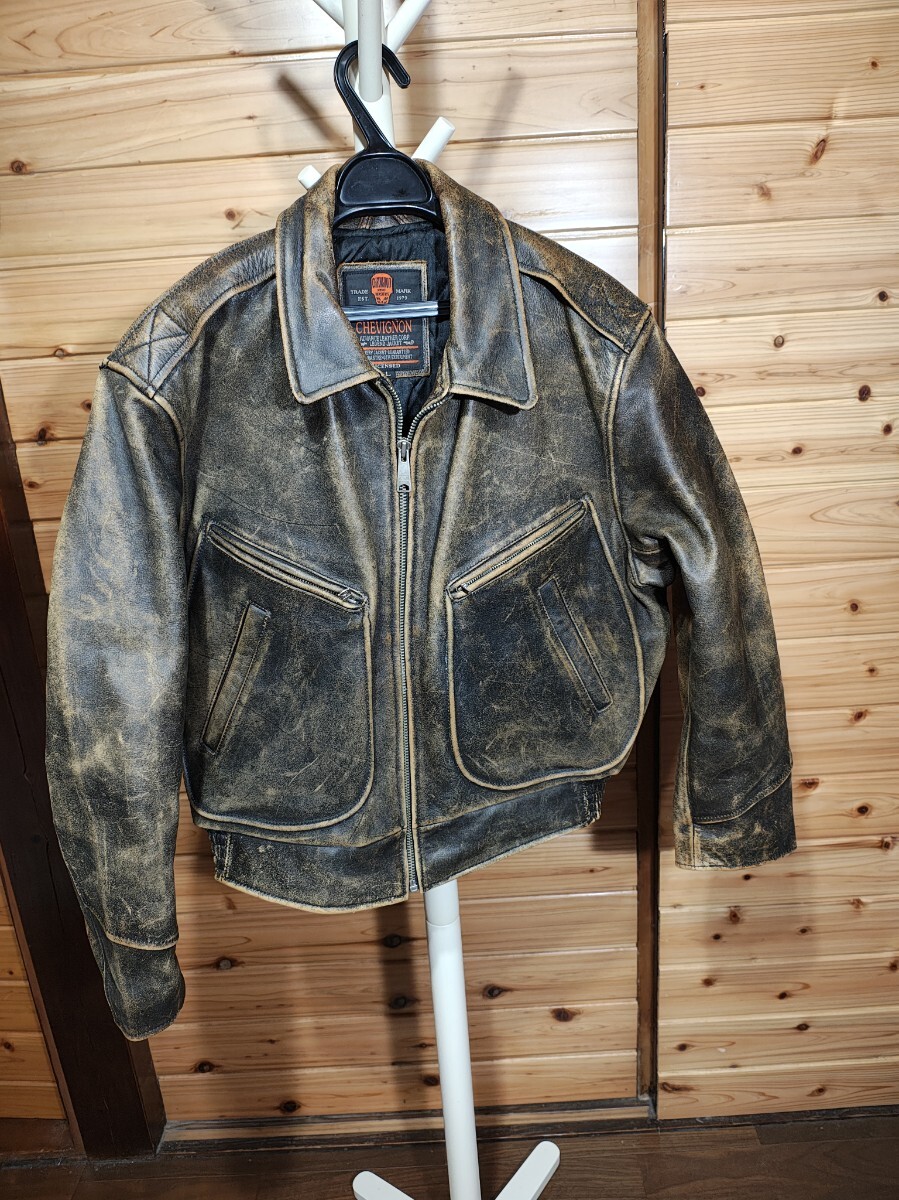 シャビニオン chevignon 肉厚レザー 本革 レザージャケット メンズ サイズL バイカー 中綿 クラックレザー ライダース