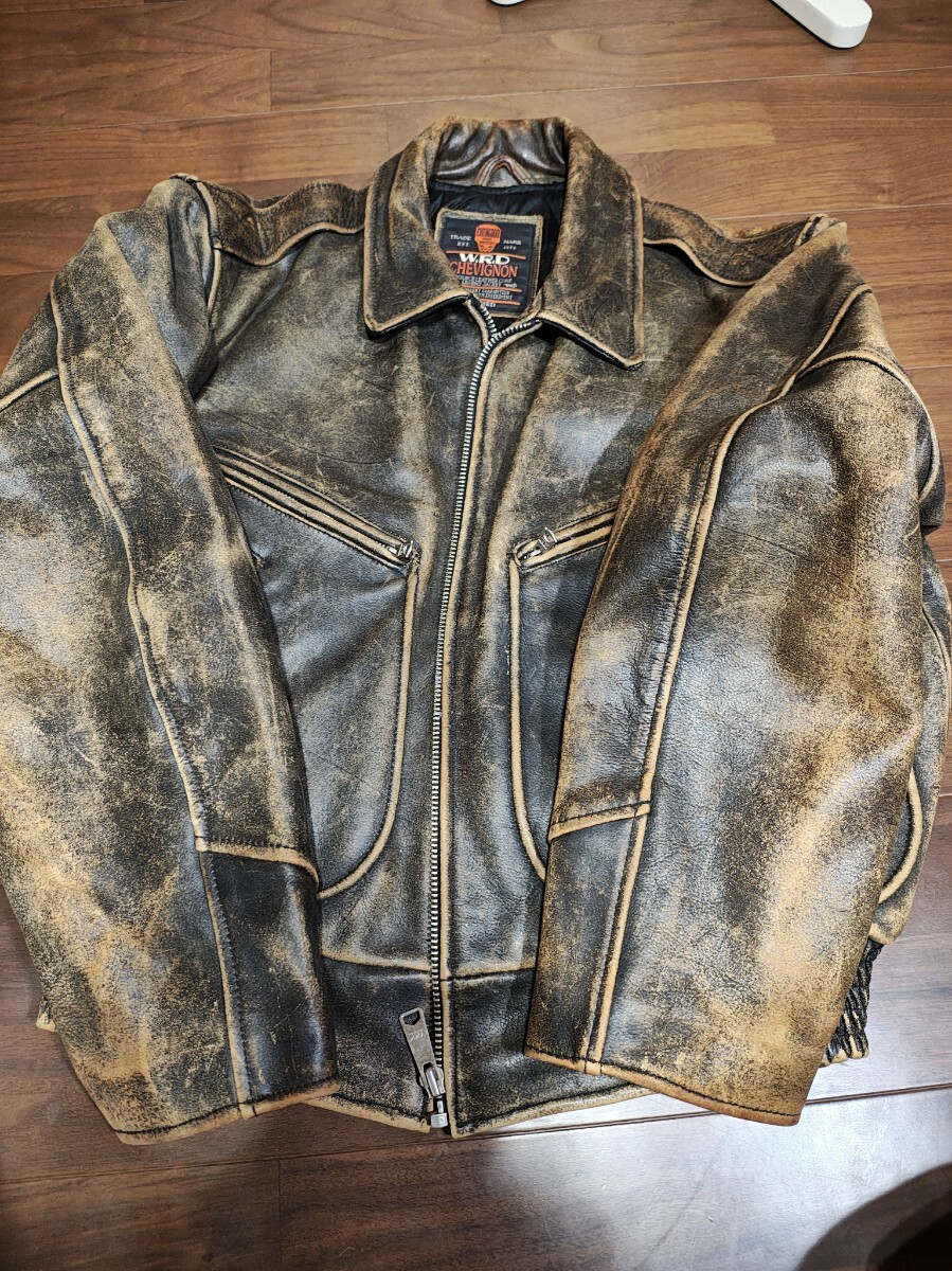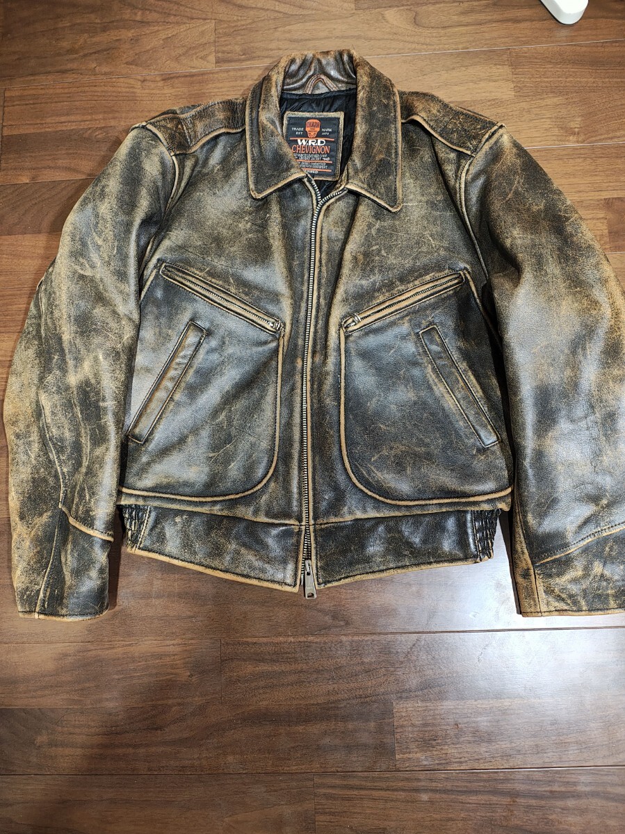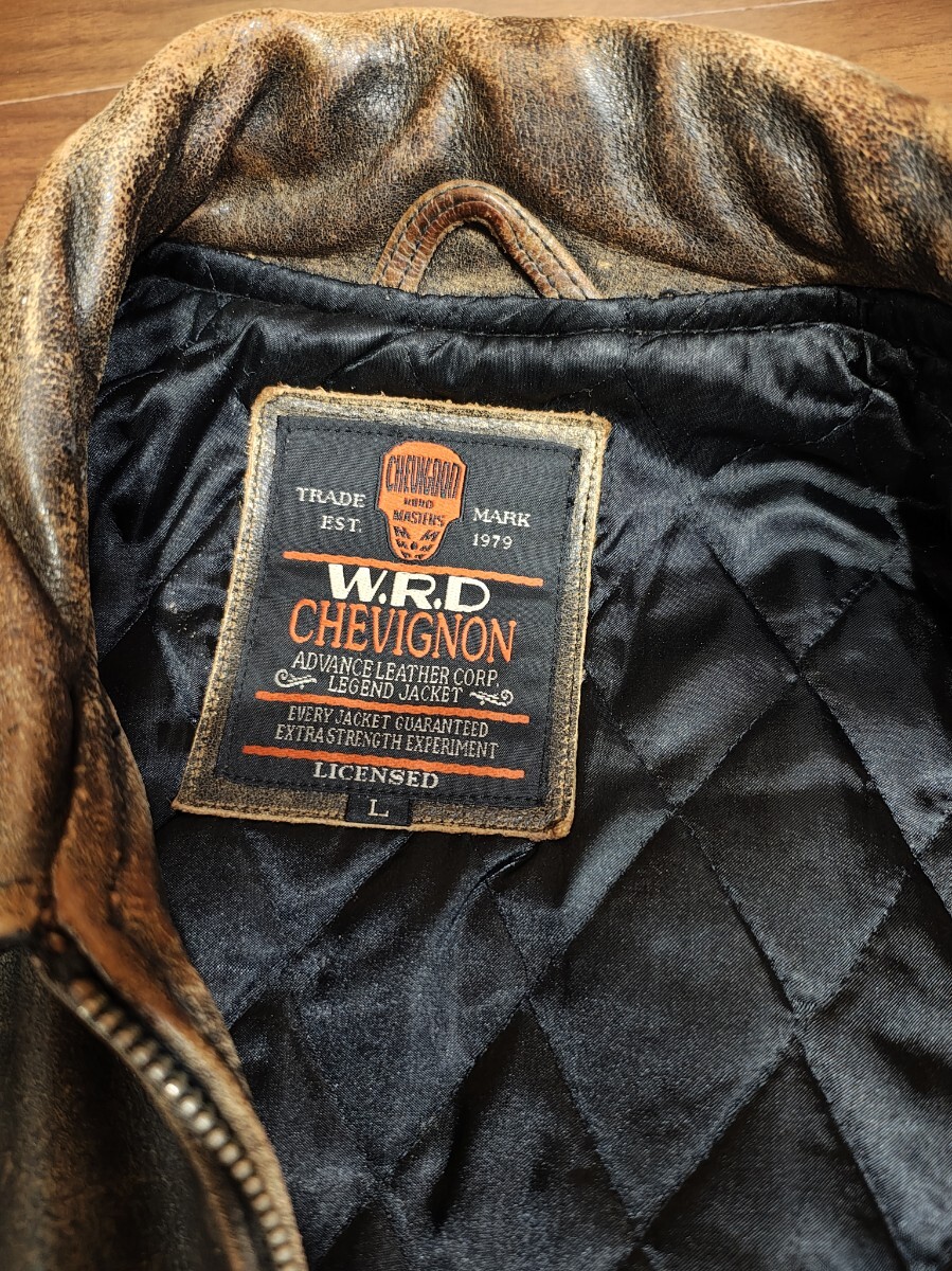 シャビニオン chevignon 肉厚レザー 本革 レザージャケット メンズ サイズL バイカー 中綿 クラックレザー ライダース