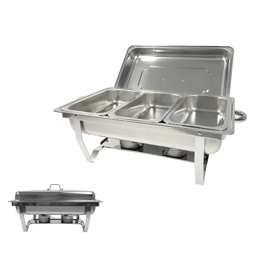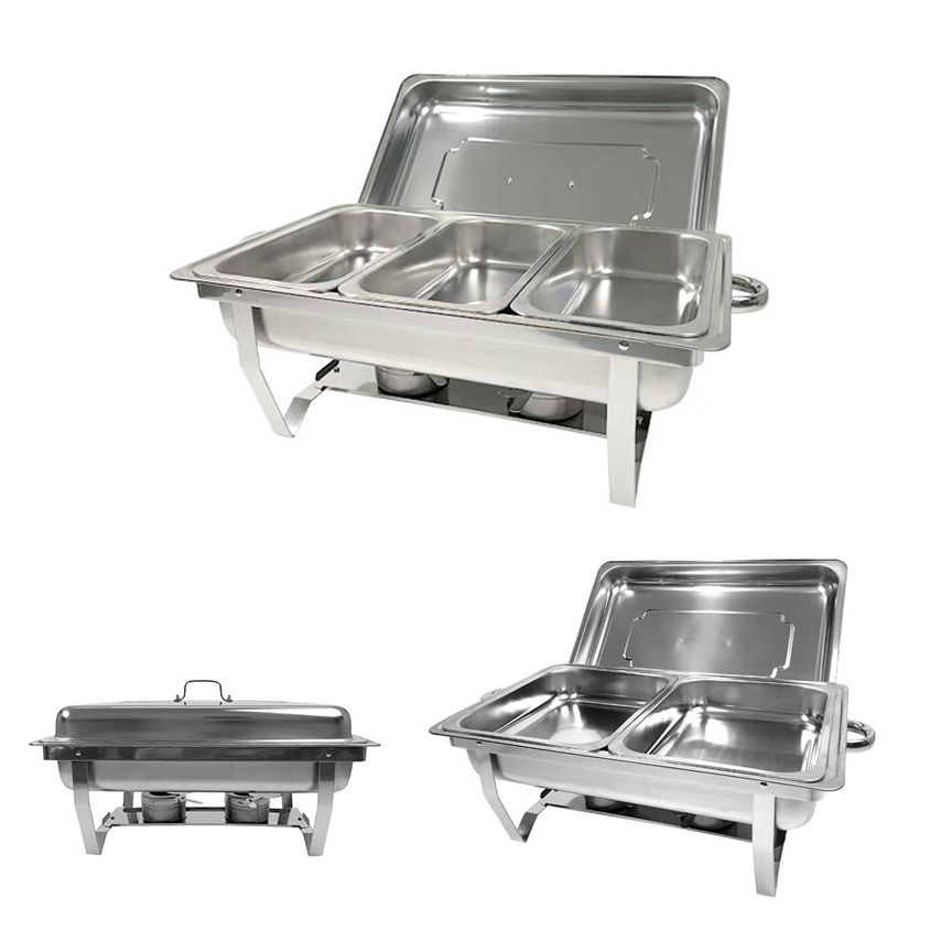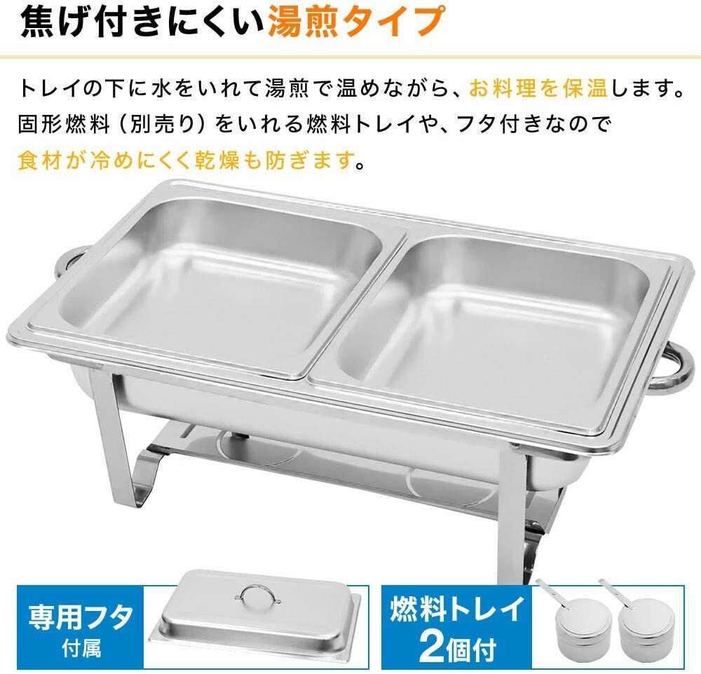 チェーフィングディッシュ 湯煎式 長方形 ステンレス製 フタ付き 保温器 保温 バイキング ビュッフェ 大容量 6-10人用 三つ分け