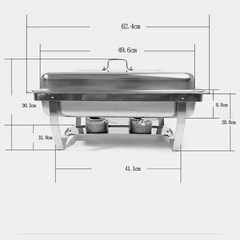 両側に2つのハンドル、カバーにハンドル、背面に2つのフックがあり、チェーファーを配置しやすく、使いやすくしています。