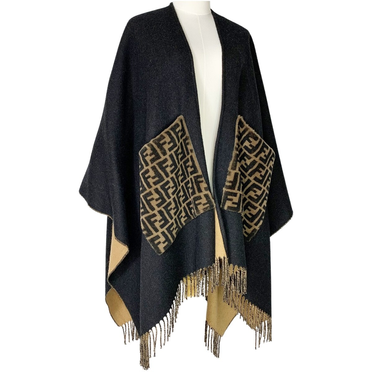 【商品名】中古 FENDI フェンディ ポンチョ ズッカ柄 FXX707 ブラック×ブラウン レディース やや傷や汚れあり