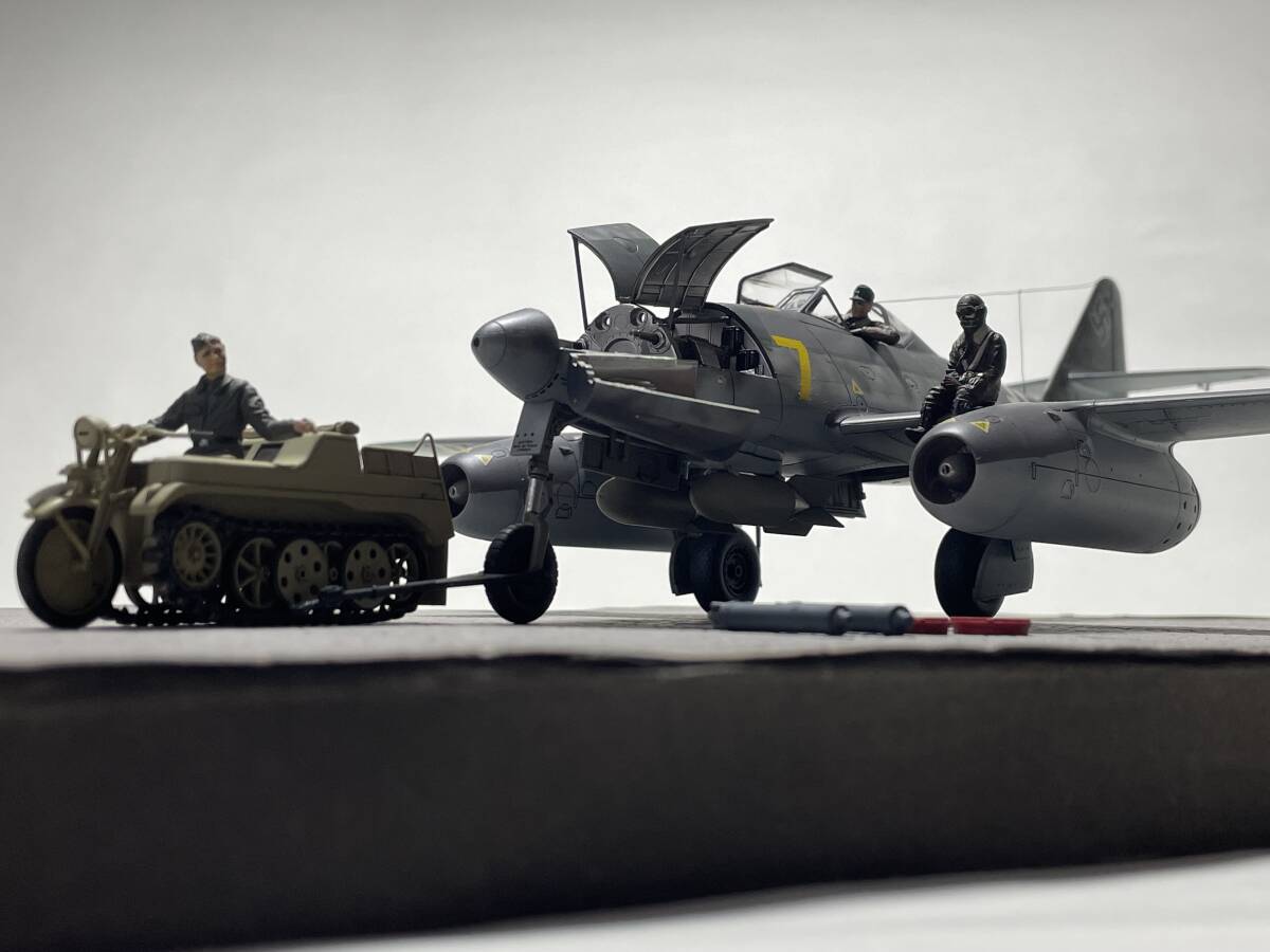 Me262の牽引に使用されたケッテンクラートもセット。今回の迷彩塗装はグレー系のRLM74、75、76を用いています。