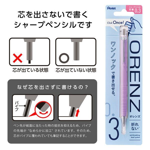 極細芯でも折れないため、初めての0.3mmでも安心!