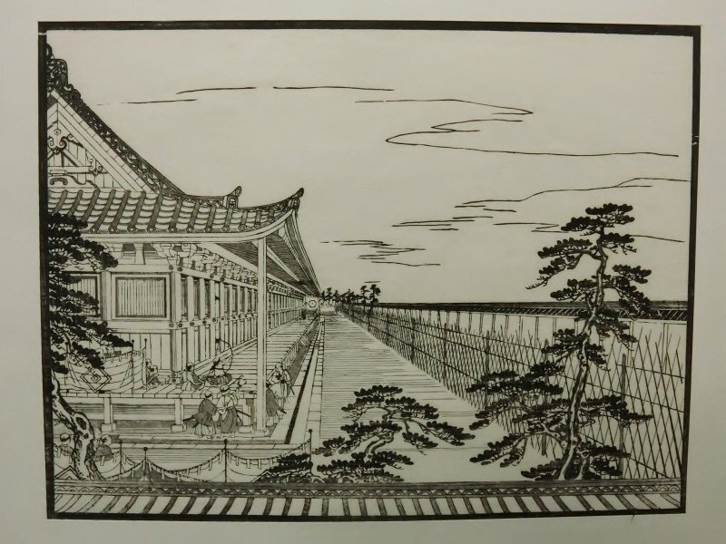 L1635 円山応挙 大矢数図 三十三間堂通し矢 眼鏡絵 古版復刻 木版画 |