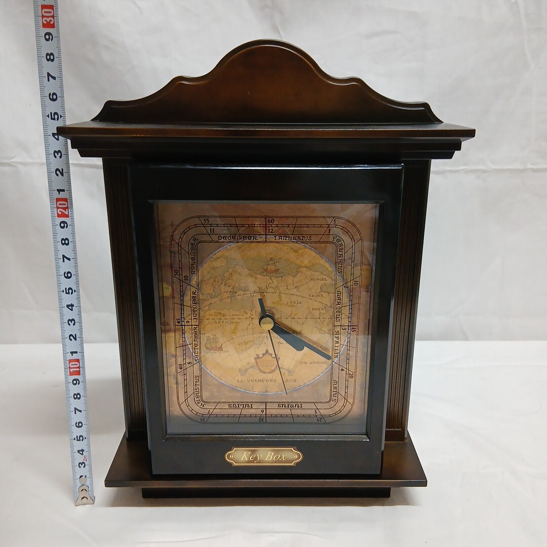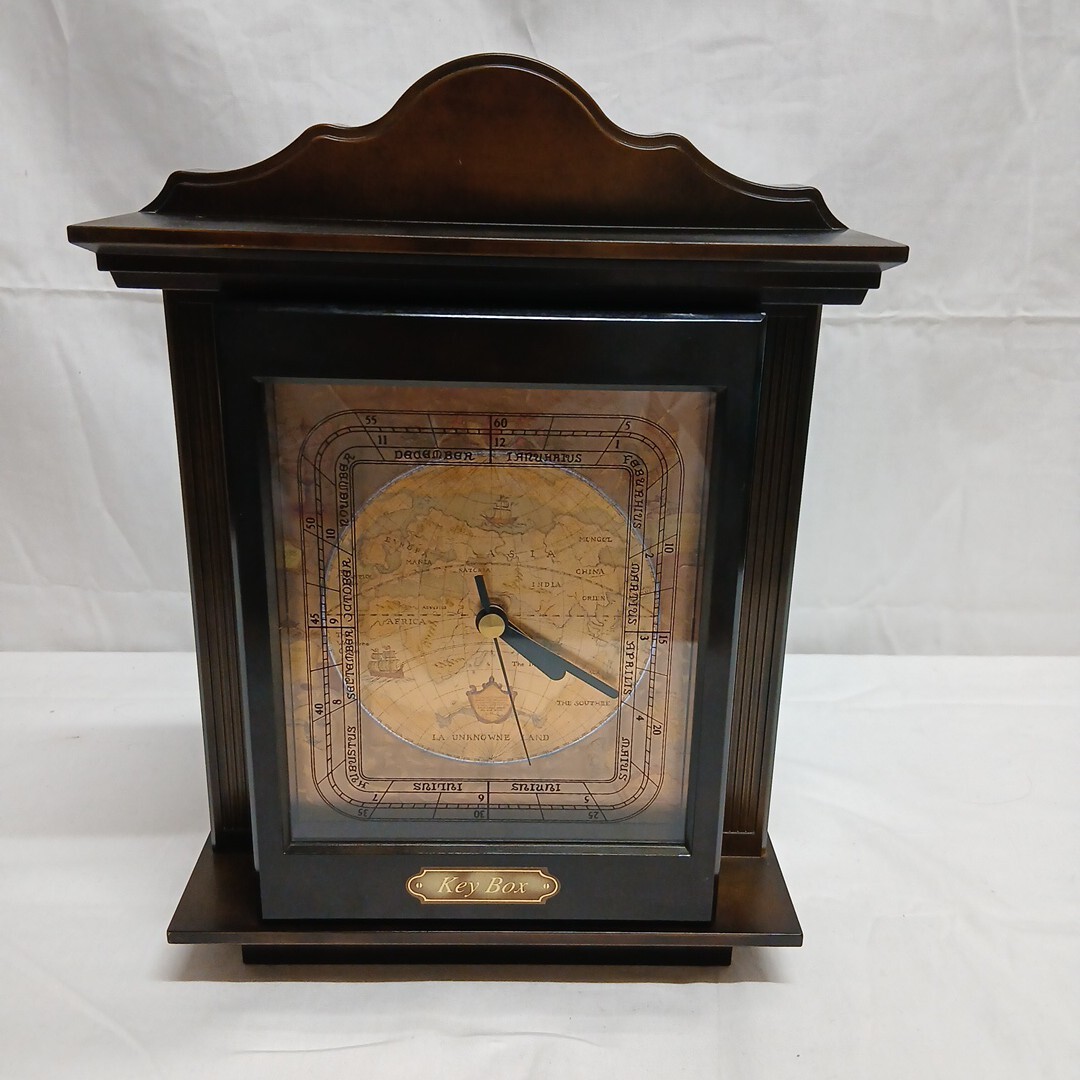 Key Box キーボックス付き置時計 置き時計掛け時計 ヴィンテージ レトロ 小物入れ 鍵 オルゴール欠品 可動品 中古保管品