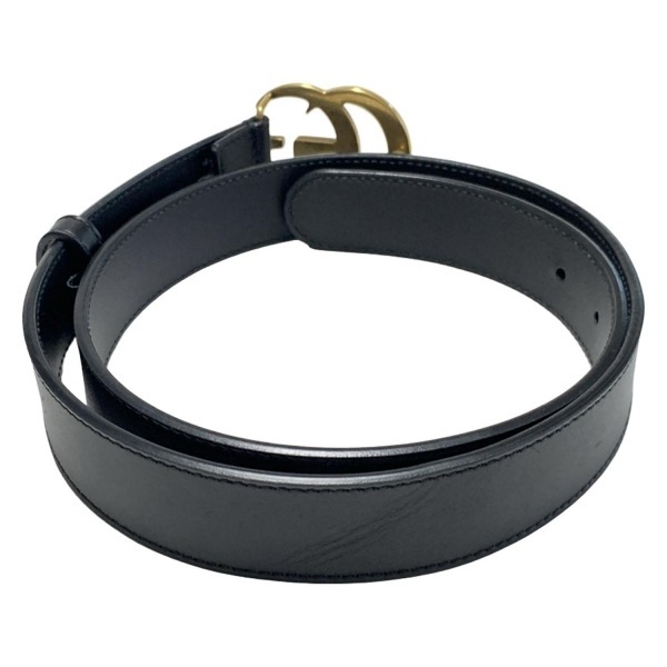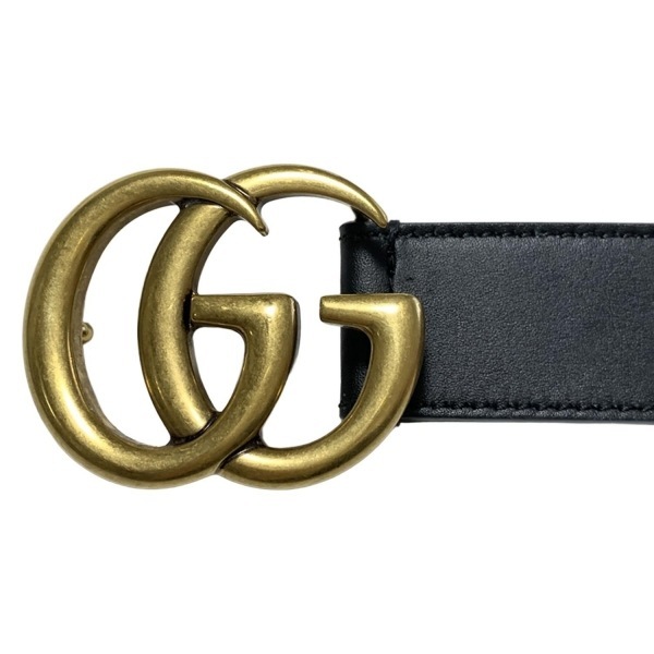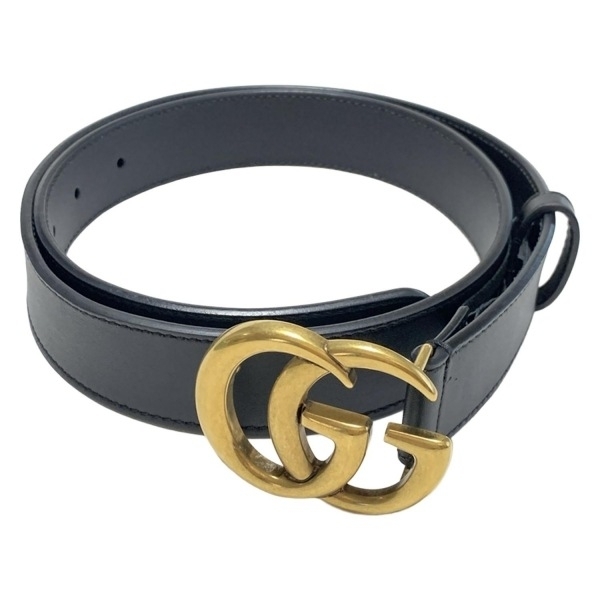 グッチ GUCCI 414516 - レザー 黒×ゴールド ダブルG ベルト