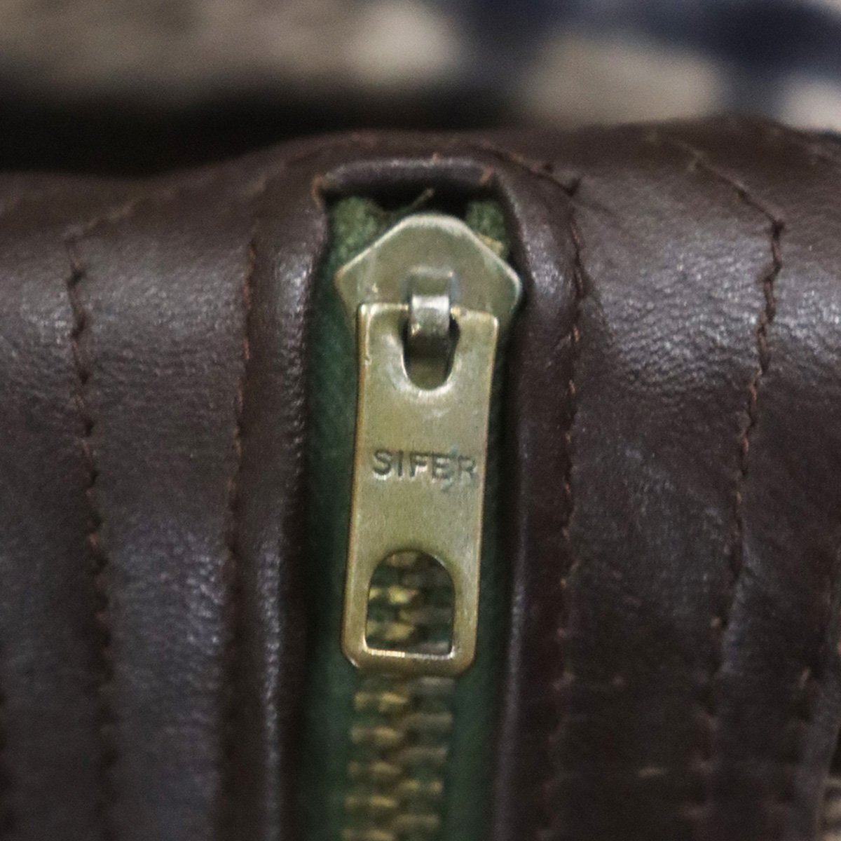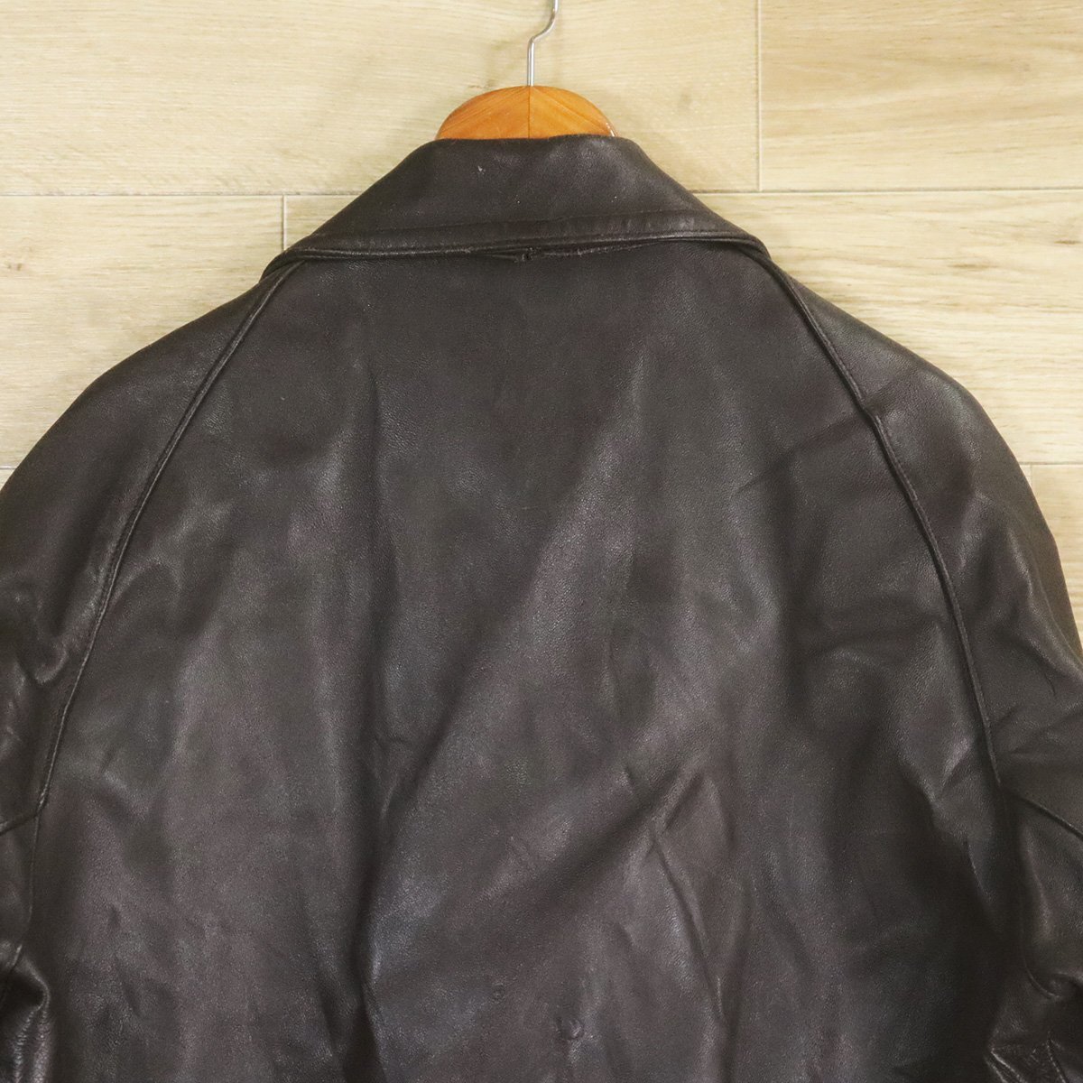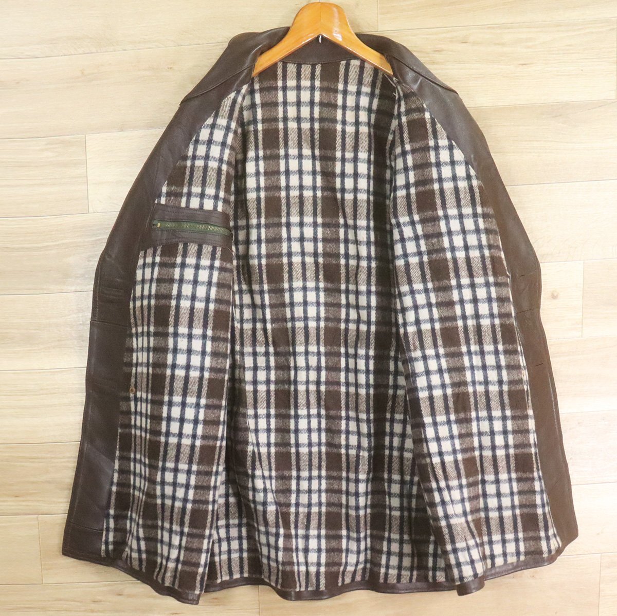 中古品です。使用感があります。全体の各所に経年によるレザー特有の擦れとアタリと汚れ、左第一ボタンの付け替え、裏地脇にリペア跡、裏地に薄汚れがあります。付属品は写真のもので全てです。