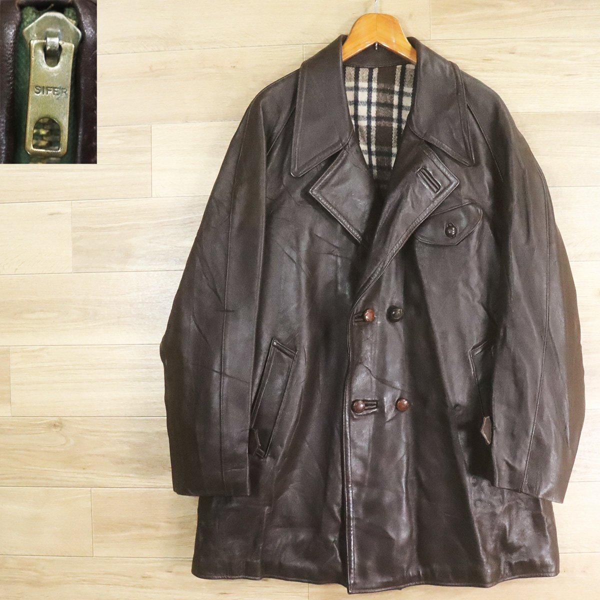B19O/O10.17-2 ユーロヴィンテージ レザーカーコート 本革 ダブルブレスト 革コート 皮コート ヴィンテージ レザージャケット