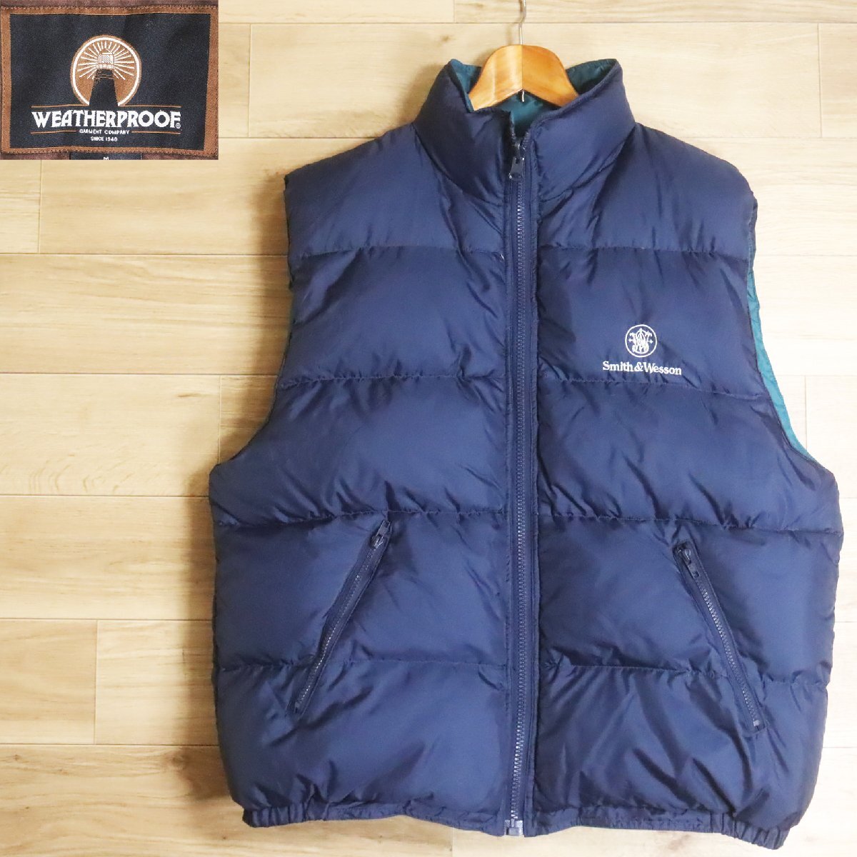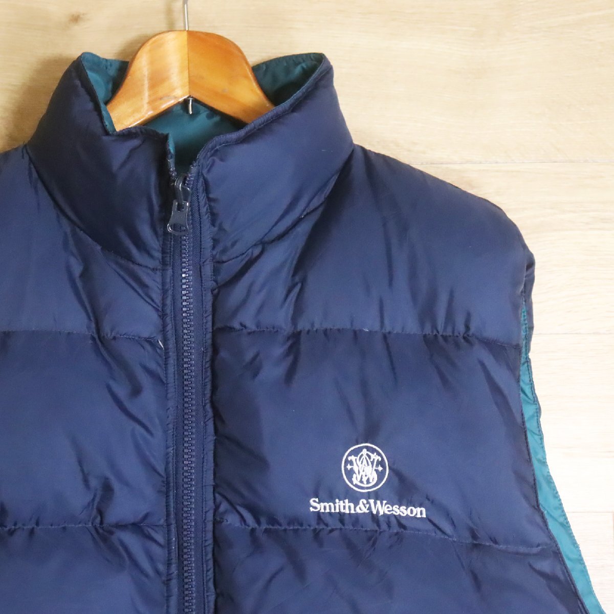 I3D/R5.12-4 アメリカ古着 Smith&Wesson スミス&ウェッソン ダウンベスト 刺繍 グースダウン リバーシブルベスト ジップアップ