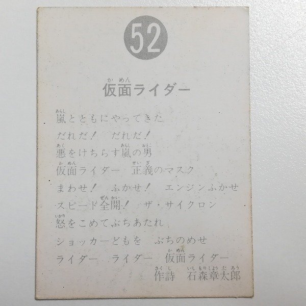| カルビー 仮面ライダースナック No.52 仮面ライダー ※11枚目以降の画像はこちらでご覧になれます。 |