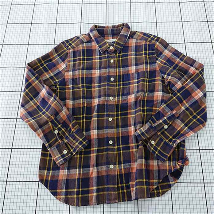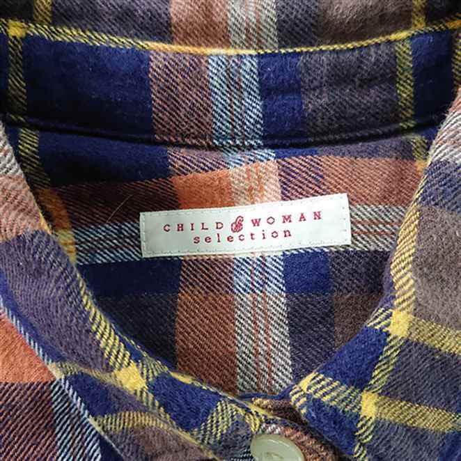 ◇ ⊇ CHILD WOMAN チャイルドウーマン 起毛素材 長袖 ネルシャツ サイズF ネイビー系オレンジ系 レディース E