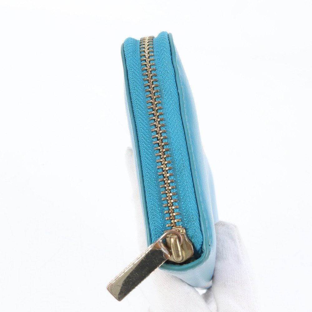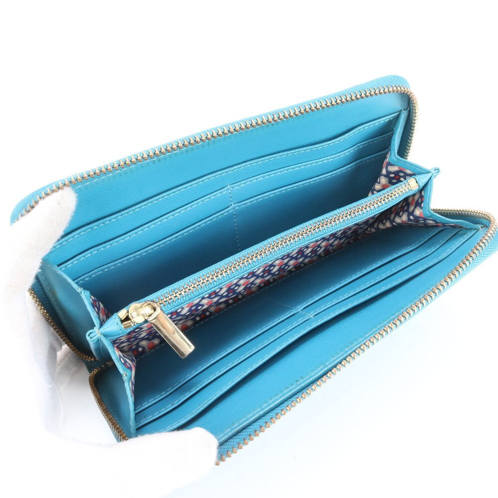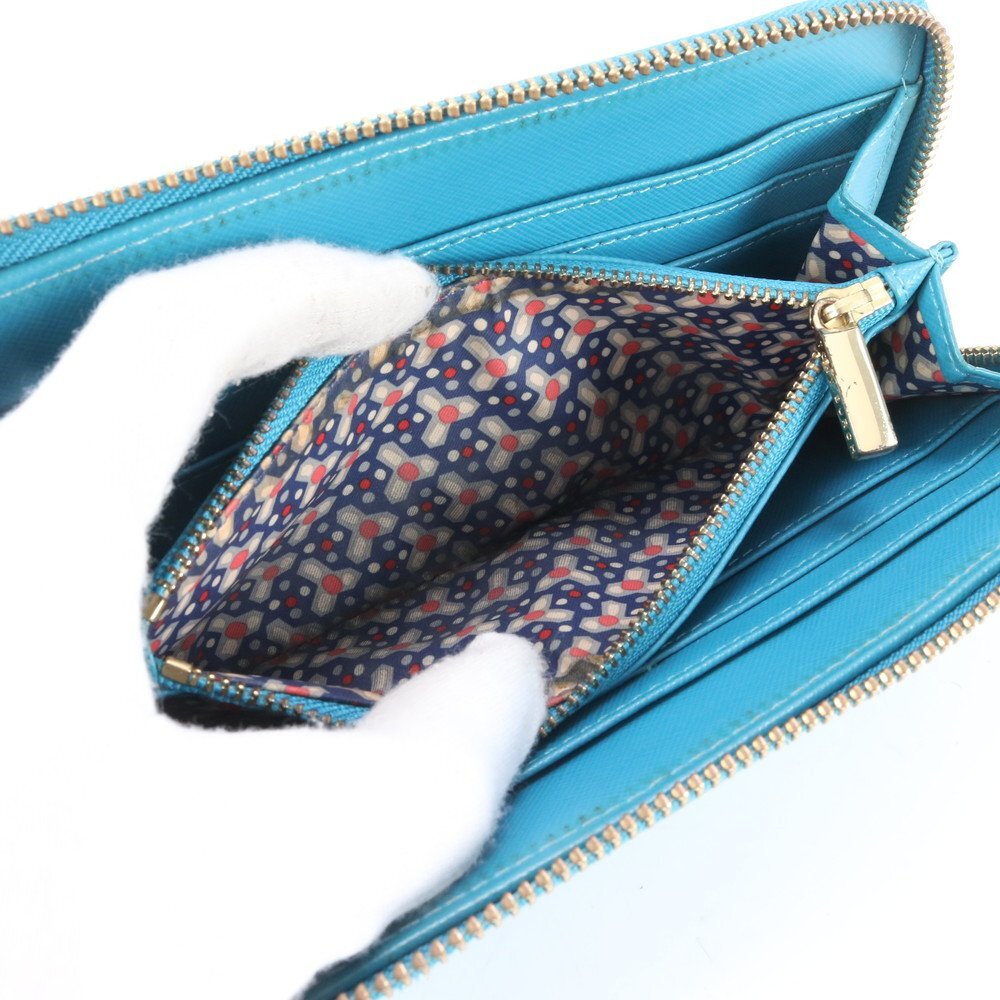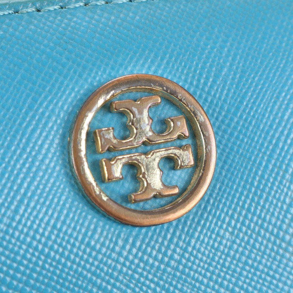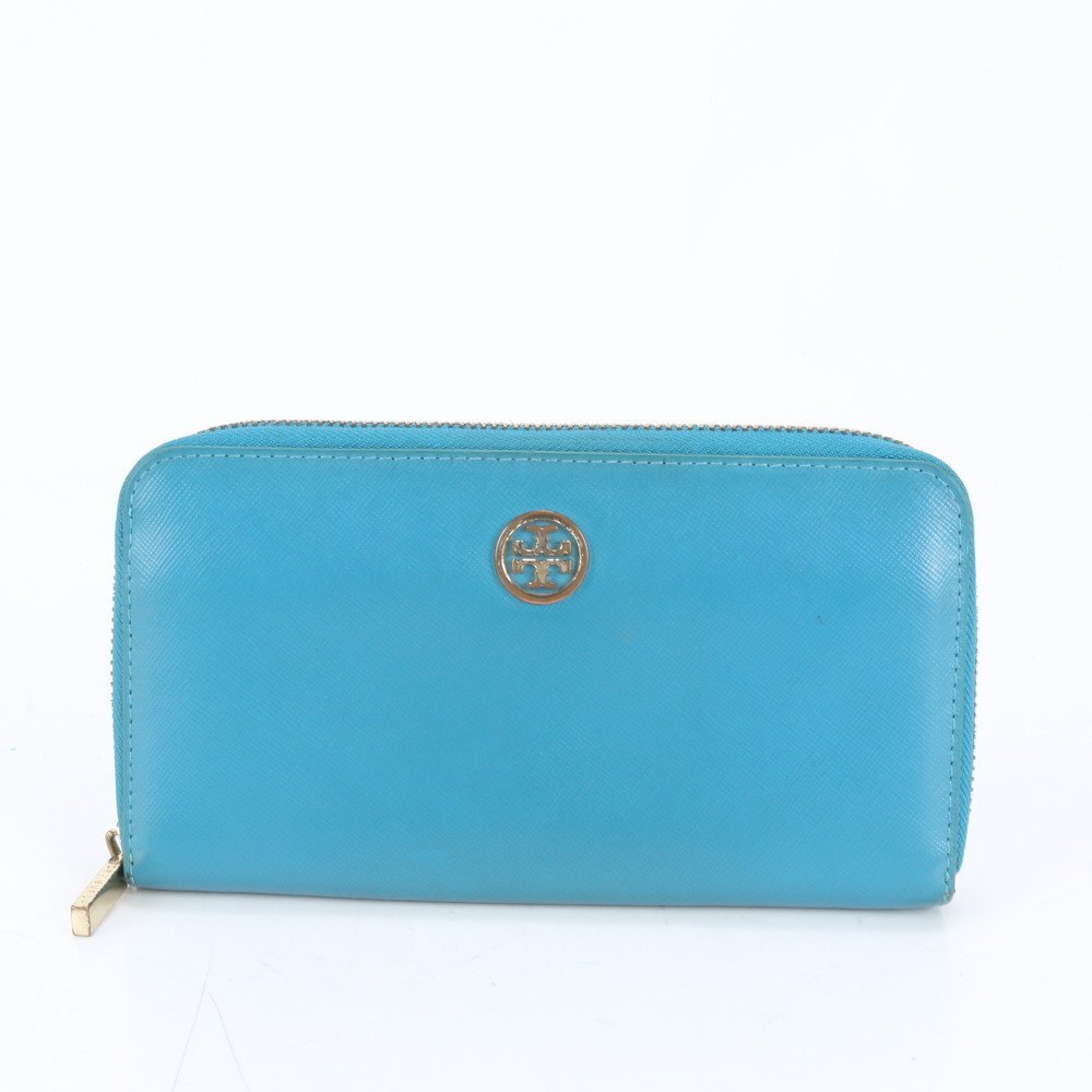 1円■美品■トリーバーチ■ダブルT ロゴ ブルー レザー 長財布 ウォレット ラウンドファスナー レディース MMM CL86-25