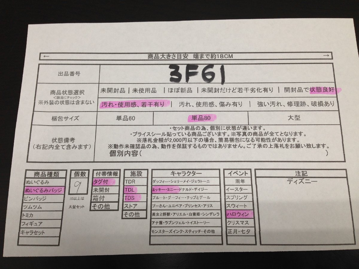 ◇ディズニー TDL TDS ミッキー ミニー ぬいぐるみバッジ 9点 タグ付あり 3F61 【80】