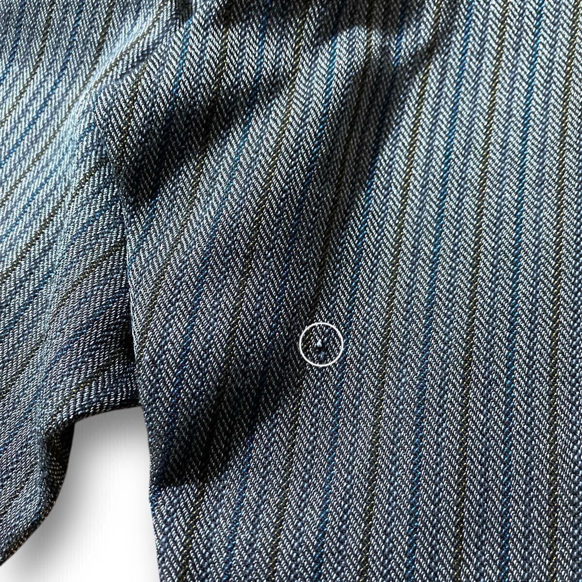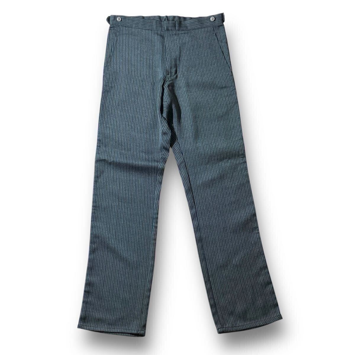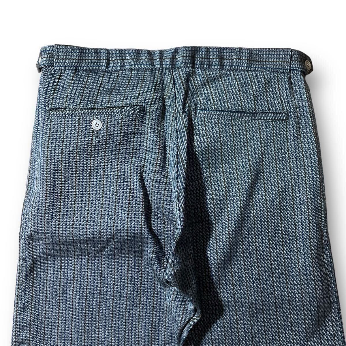 * 一見すると、グレー系のシックなストライプ柄トラウザー。ハリのある上質な生地感と美しいシルエットで、日常のコーディネートにも取り入れやすい洗練された印象を与えます。