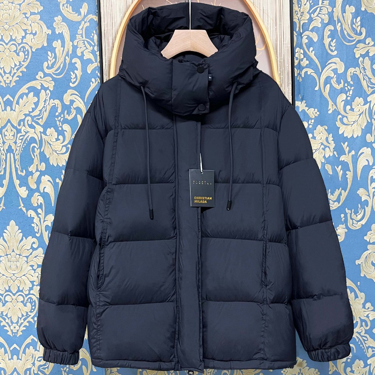定価10万★christian milada・ミラノ発・ダウンジャケット★ダックダウン90% 軽量 暖かい ふんわり フード付き コート レディース M/36