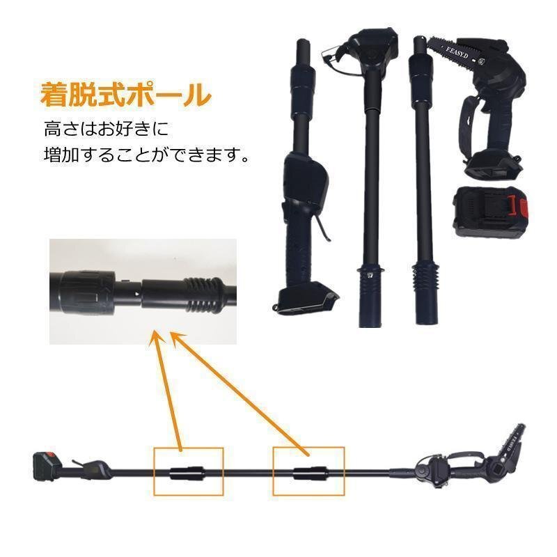 高枝切り 電動チェーンソー コードレス 角度調節可能 20cm切断可能 両用式 軽量 女性用 着脱式ポール 130cm shw0001