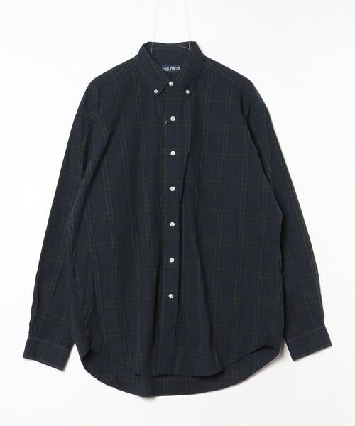 「NAUTICA」 チェック柄長袖シャツ L ネイビー メンズ