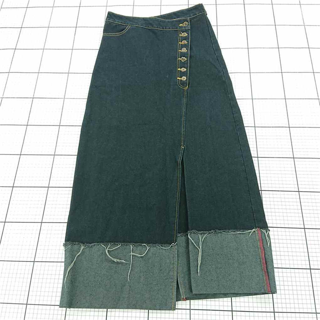 ◇ Θ Unitage デニムロングスカート フリンジデザイン Mサイズ レディース ネイビー系 E