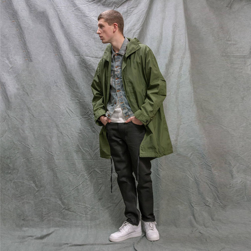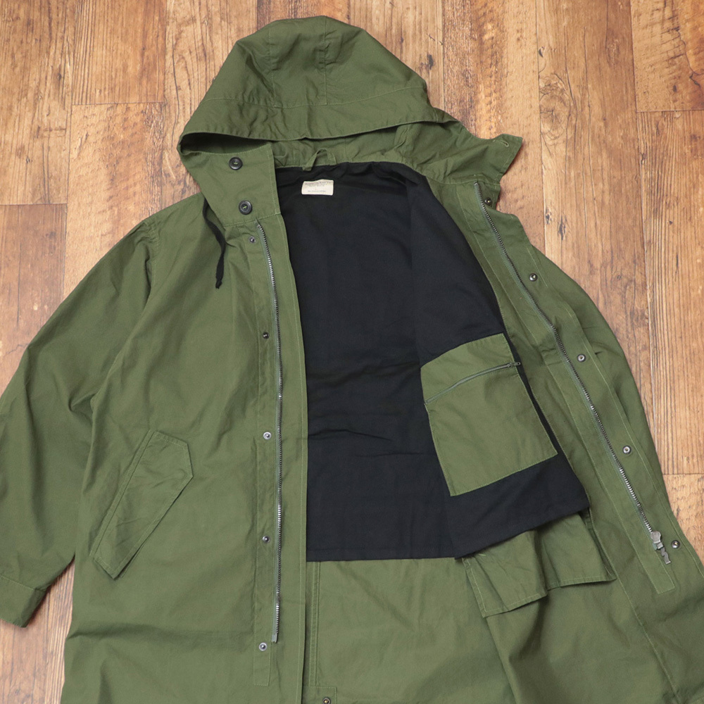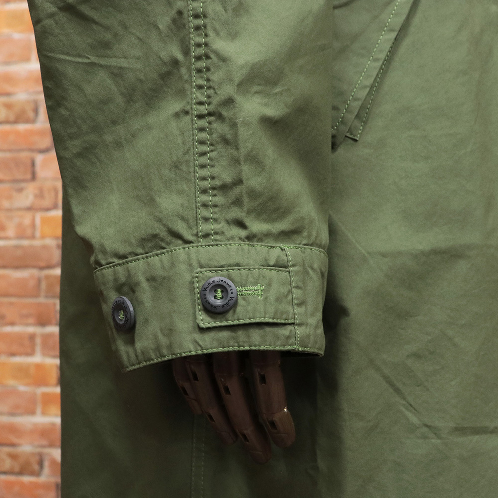 後ろ裾のフィッシュテールデザインがクラシックなミリタリーテイストを引き立て、2つのフラップポケットと内側のパッチポケットが実用性をプラス。機能性と洗練されたデザインを兼ね備えた、デイリーからアウトドアまで幅広く活躍する一着です。