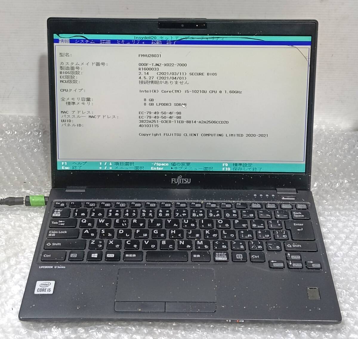 外観不良 画面割れ、FUJITSU U9310/D Core i5-10世代 8GB 13.3インチ ジャンク5288