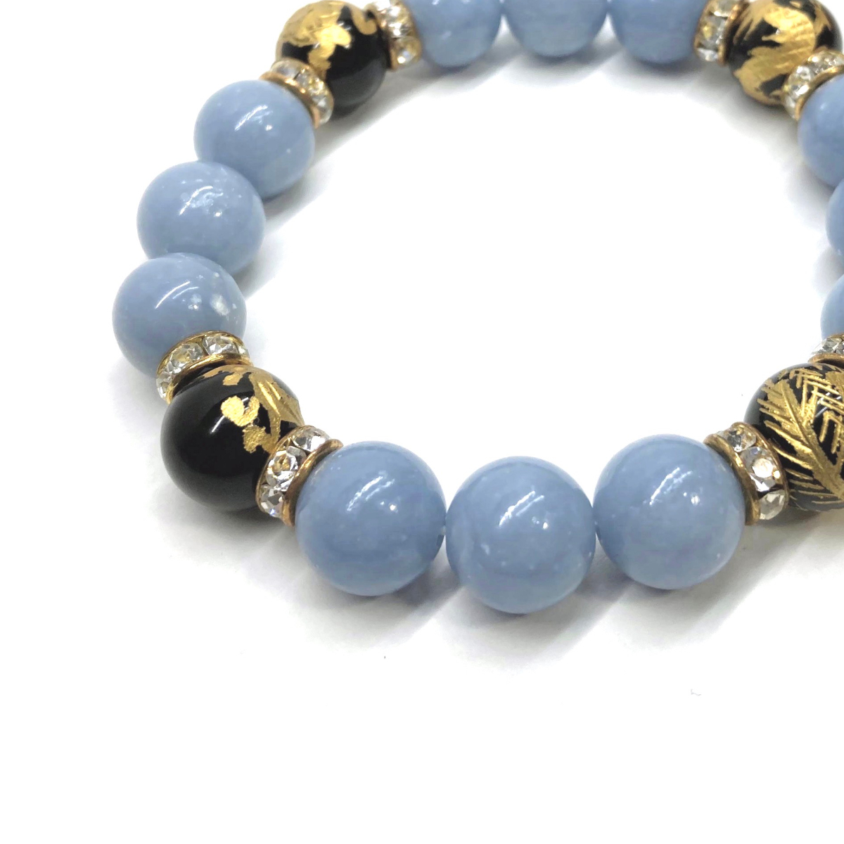 こちらは、四神獣金彫オニキとエンジェライトを組み合わせたパワーストーンブレスレットです。四神獣は、中国の伝説で4つの方向(東西南北)を守護する神聖な神。四神獣、厄災から身を守り、多くの運気を呼び込むと言われております。石大きさは程よくインパクトのある12mm玉で内周 約17cmです。 数に限りがございますので気になる方はお早めにどうぞ。