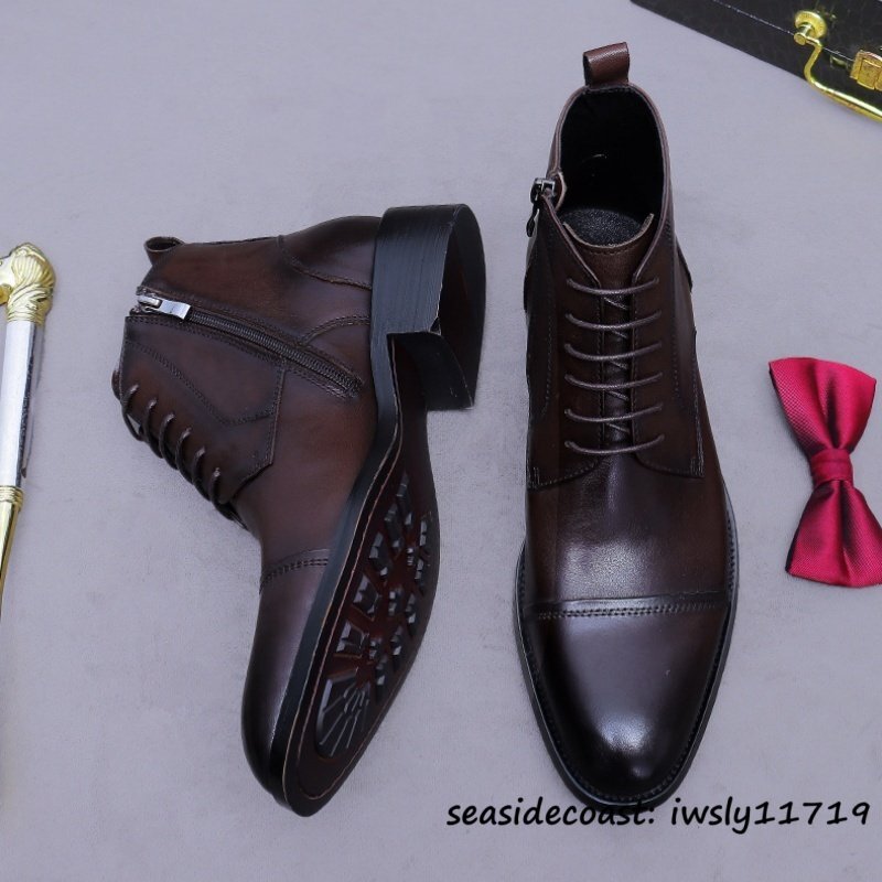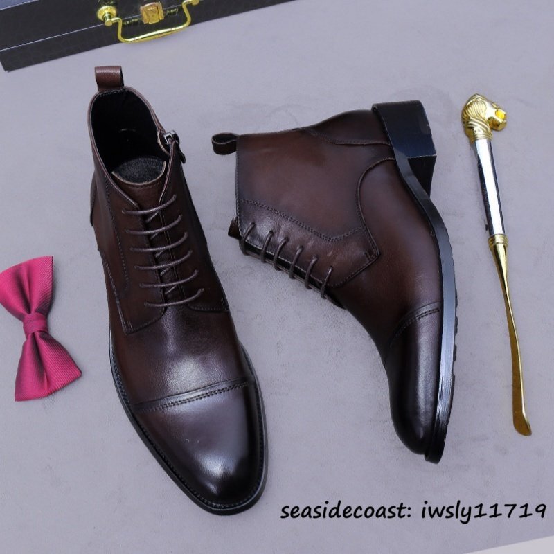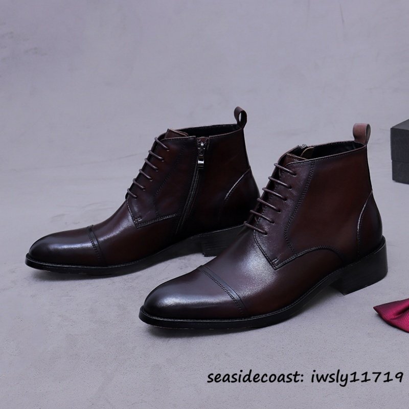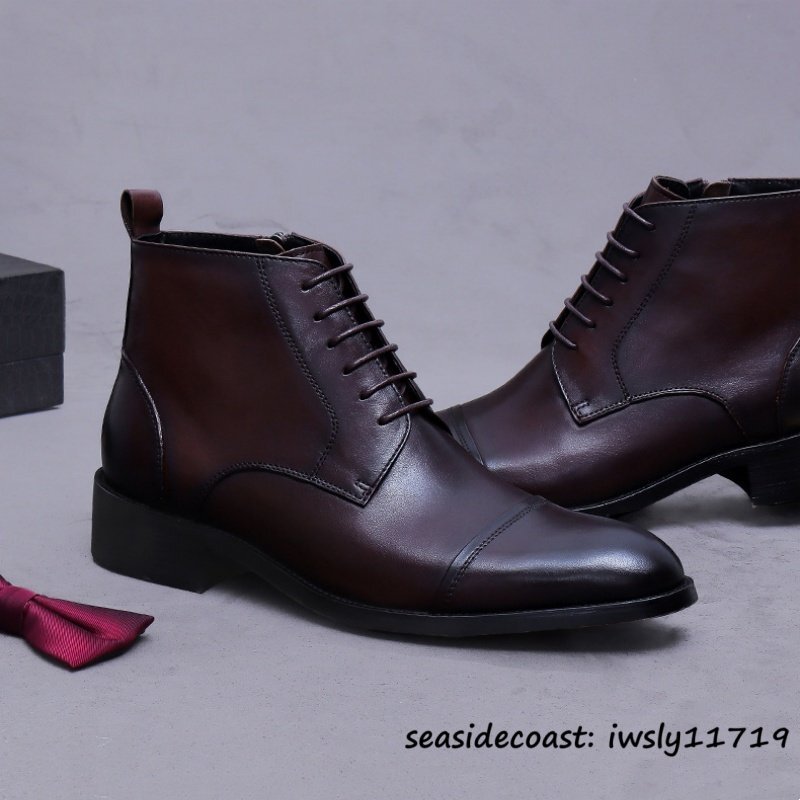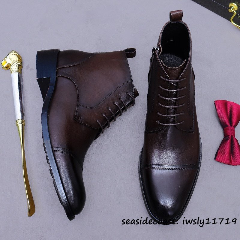 入手困難■ショートブーツ メンズ 高級牛革 レザーブーツ マーティンブーツ 本革 職人手作り オックスフォード フォーマル ブラウン 25.5cm