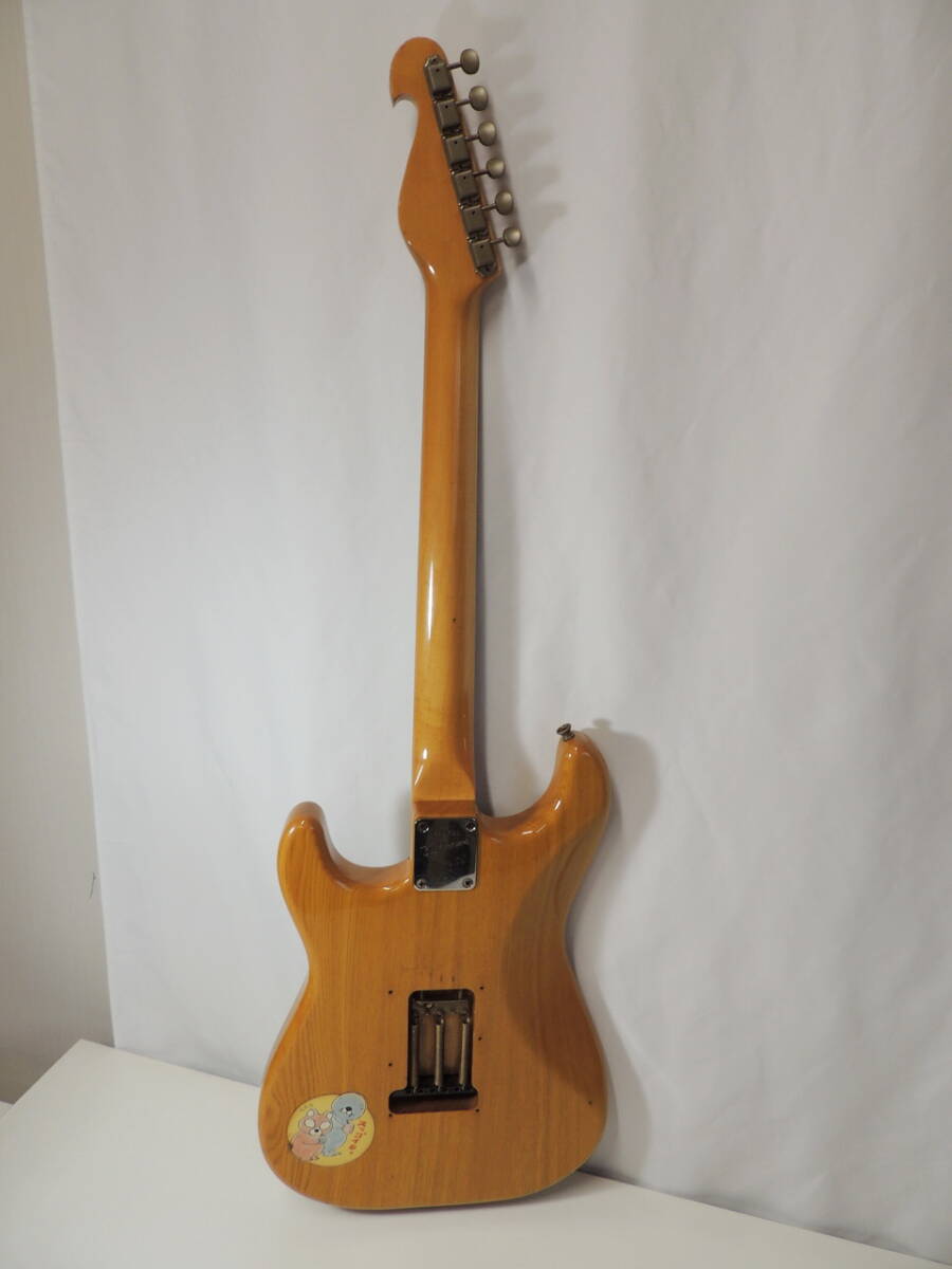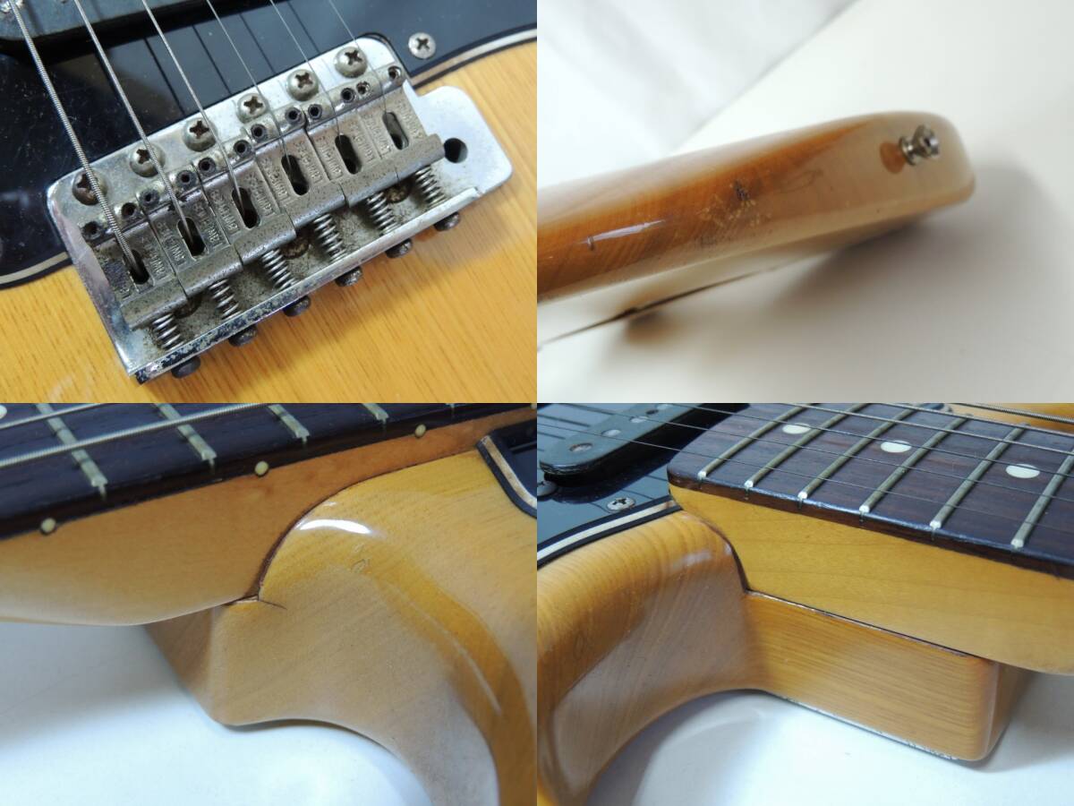長年趣味としてギター収集・演奏をされていた方のお部屋を片付けて譲り受けた約30本のギターの中の1本です。 元オーナーがヘビースモーカーだった為、全てにタバコ臭が染みついており、非喫煙者の自分には部屋に置いておくだけで辛いほどのニオイがします。 ところどころ部品が無いものや破損部分があるものも多く、詳しい知識が無いので細かく状態を文章でお伝えすることが困難です。 恐らくカスタマイズされているであろう物が殆どですので、オリジナル状態が分からない自分には、説明に窮するものばかりです。 極端に申し上げますと、ネックとボディが別々のメーカーだというようなこともあるかもしれません。 題名や商品説明にも誤りが多くあるかもしれませんので、全て現物(画像)優先とさせていただきます。 できるだけ画像でお伝えできるように努力してはいますが、至らぬ点も多いかと思いますので、ご不明な点に関しては、ド素人でも確認できるように質問していただけますと非常に助かります。 以上の理由(難あり理由)により、何か不備等があっても対応できませんので、当該出品に関しては全て修理前提・部品取りとしてのジャンク品とさせていただき、ノークレーム厳守でお願い致します。 画像をよく確認していただき、識者の方が納得の上での入札をお願いできますと幸甚です。 (画像は実物より綺麗に見えますので過度な期待はなさらぬようお願い致します) ■アンプに繋いで確認したところ、不安定ですがセレクターをブリッジ側にした時のみ音は出ました。 ■外観、経年劣化や使用にともなう傷みや汚れがございます。 (ボディのネック接合部に小さな割れがあるように見えます:画像参照下さい) ■トレモロアーム欠品しています。 ■ソフトケース付属しますがオマケ程度とお考え下さい。 ■新品弦1セットをオマケで付けます。 ■画像のものが出品物の全てです。 (背景内のものは含まれません) ■1円スタートです.....宜しくお願い致します。 ■入札された時点で下記注意事項を全てご確認及びご同意いただいたと判断します | ||||