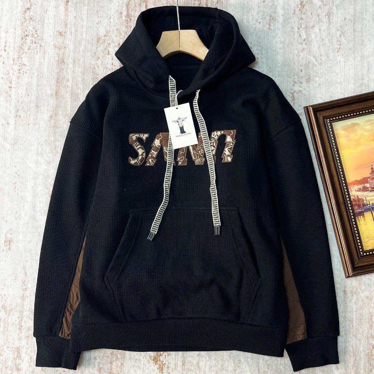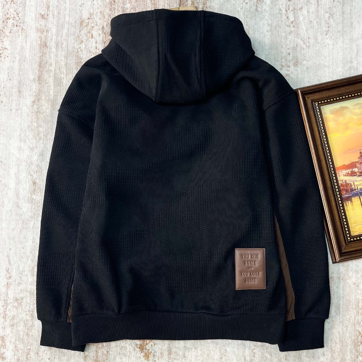 パーカー ロンドン製造 コットン混 快適 上品 保温 柔らか オシャレ 切り替え トレーナー トップス 長袖 カジュアル 普段着 秋冬 SIZE:XL